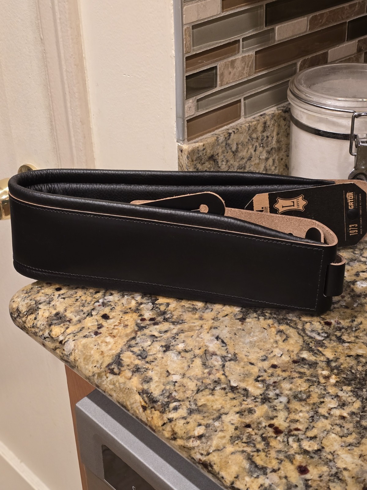 Levy's 3 inch Wide Top Grain Leather Guitar Straps Black NEW NWT
