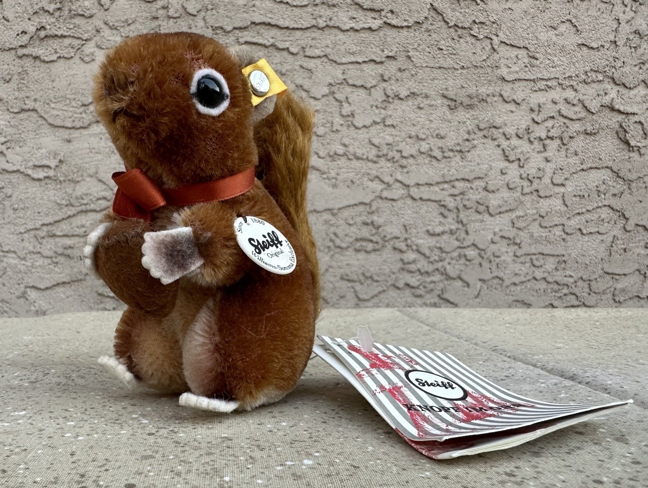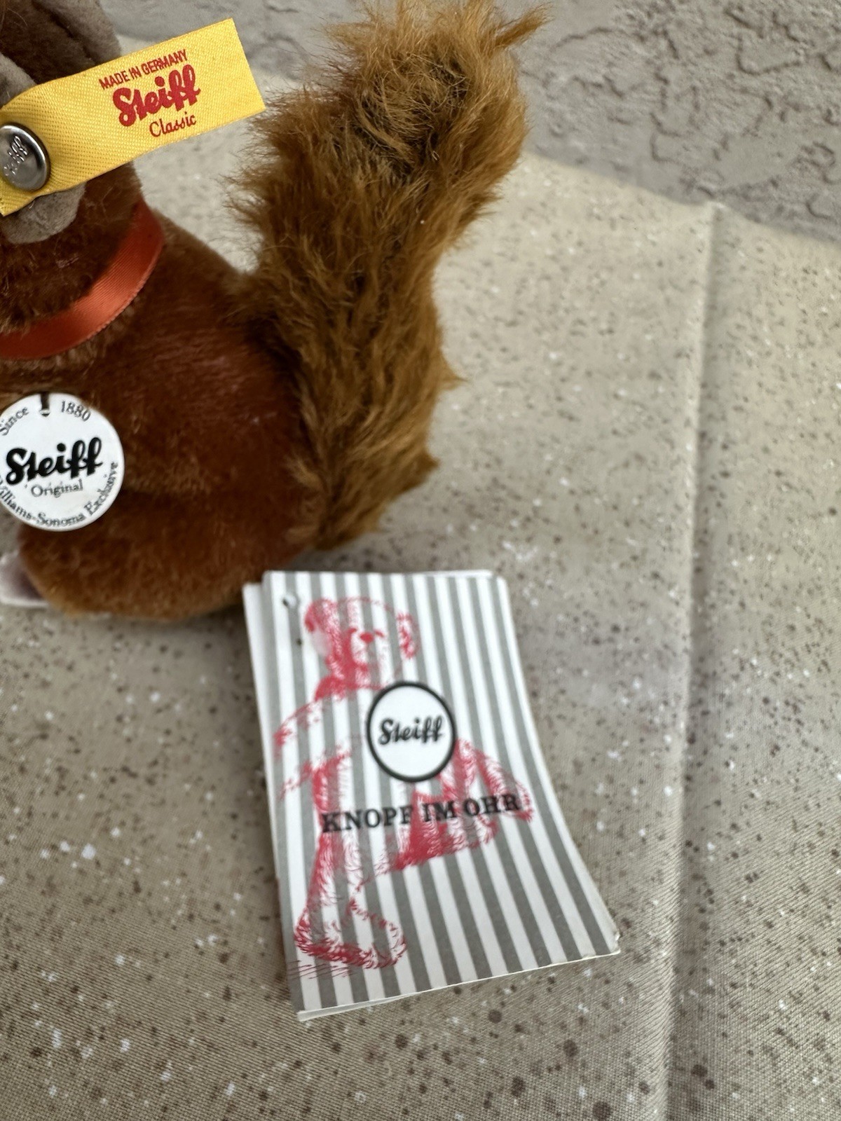 Steiff Mohair Squirrel Plush 10 Williams-Sonoma Exclusive Red Ribbon VTG