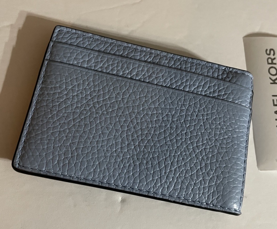 Michael Kors Cooper Compact ID Wallet Leather Light Sky Blue 138 New With Tags