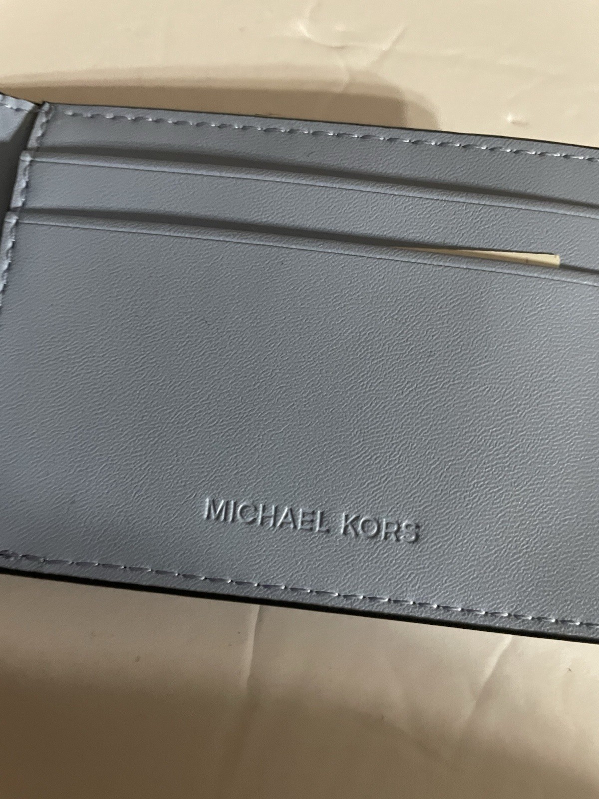 как выглядит Michael Kors Cooper Compact ID Wallet Leather Light Sky Blue 138 New With Tags фото