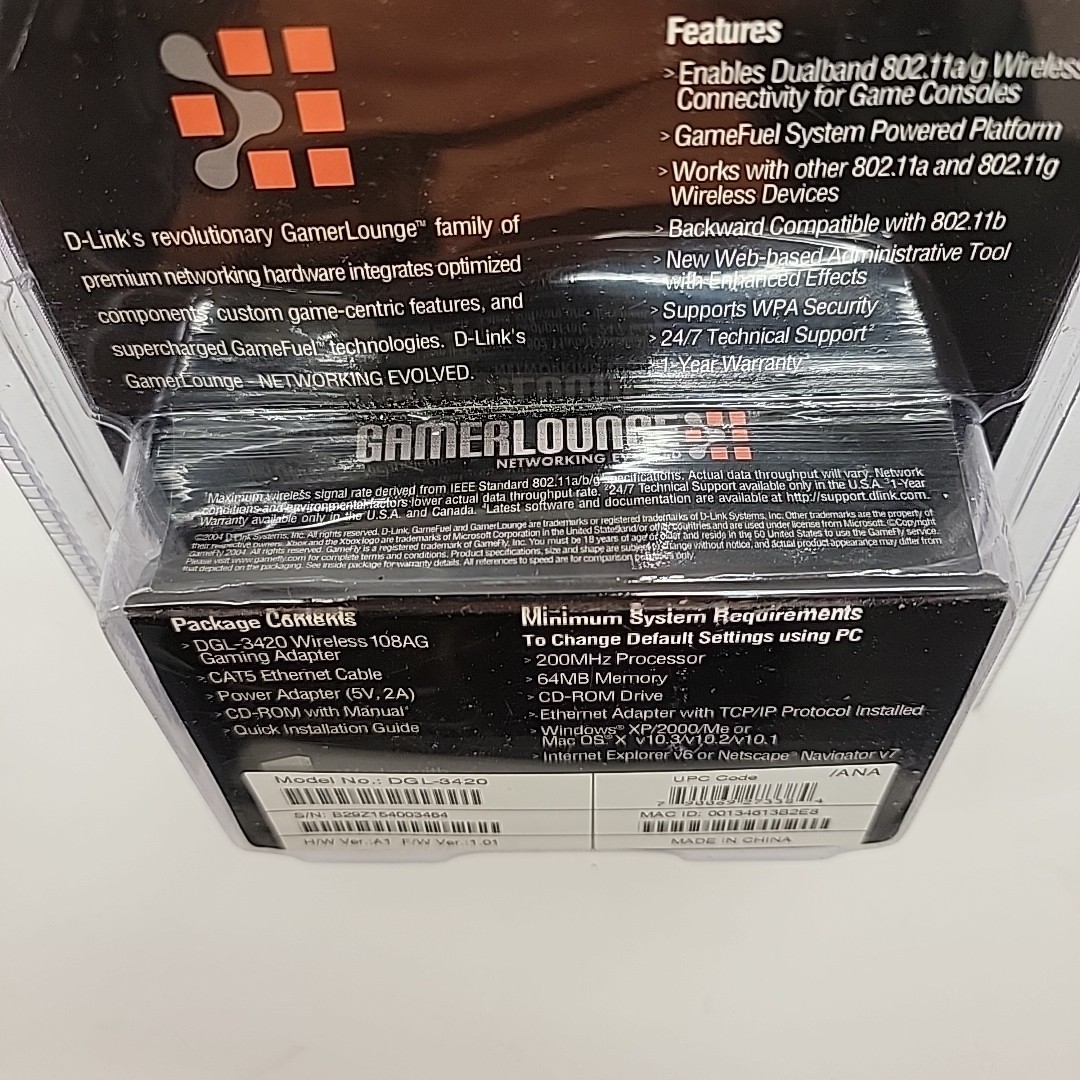 D-Link Wireless 108AG Gaming Adapter Model DGL-3420 H/W Ver A1 Open Box