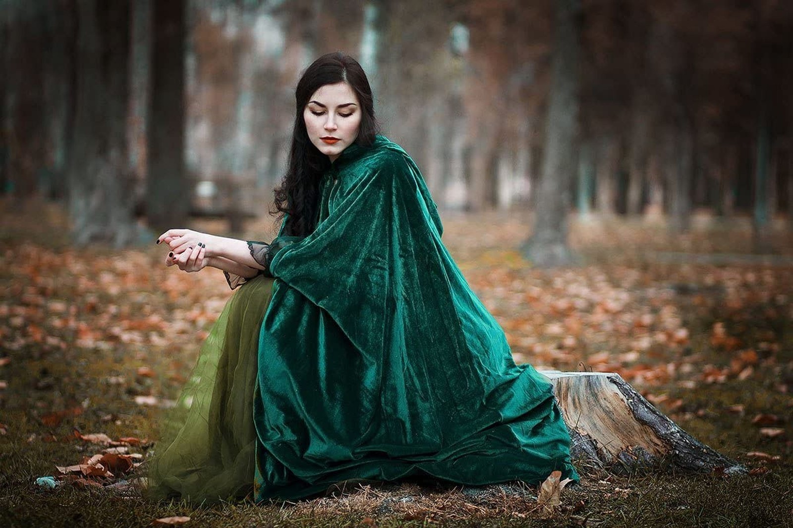 как выглядит Women 8216;s Full Length Witch Cloak Character Velvet Cape Fancy Cosplay Costum фото