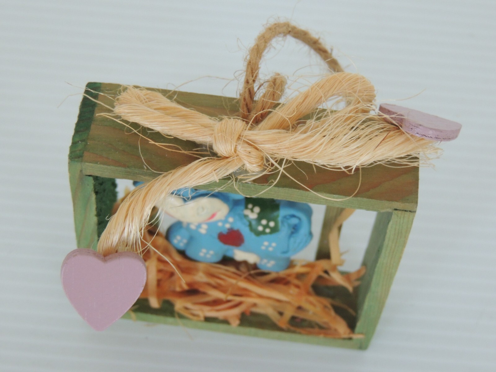 как выглядит Christmas Baby blue Cow Calf in green wood 3 1/4 x3 1/4 Ornament, very cute фото