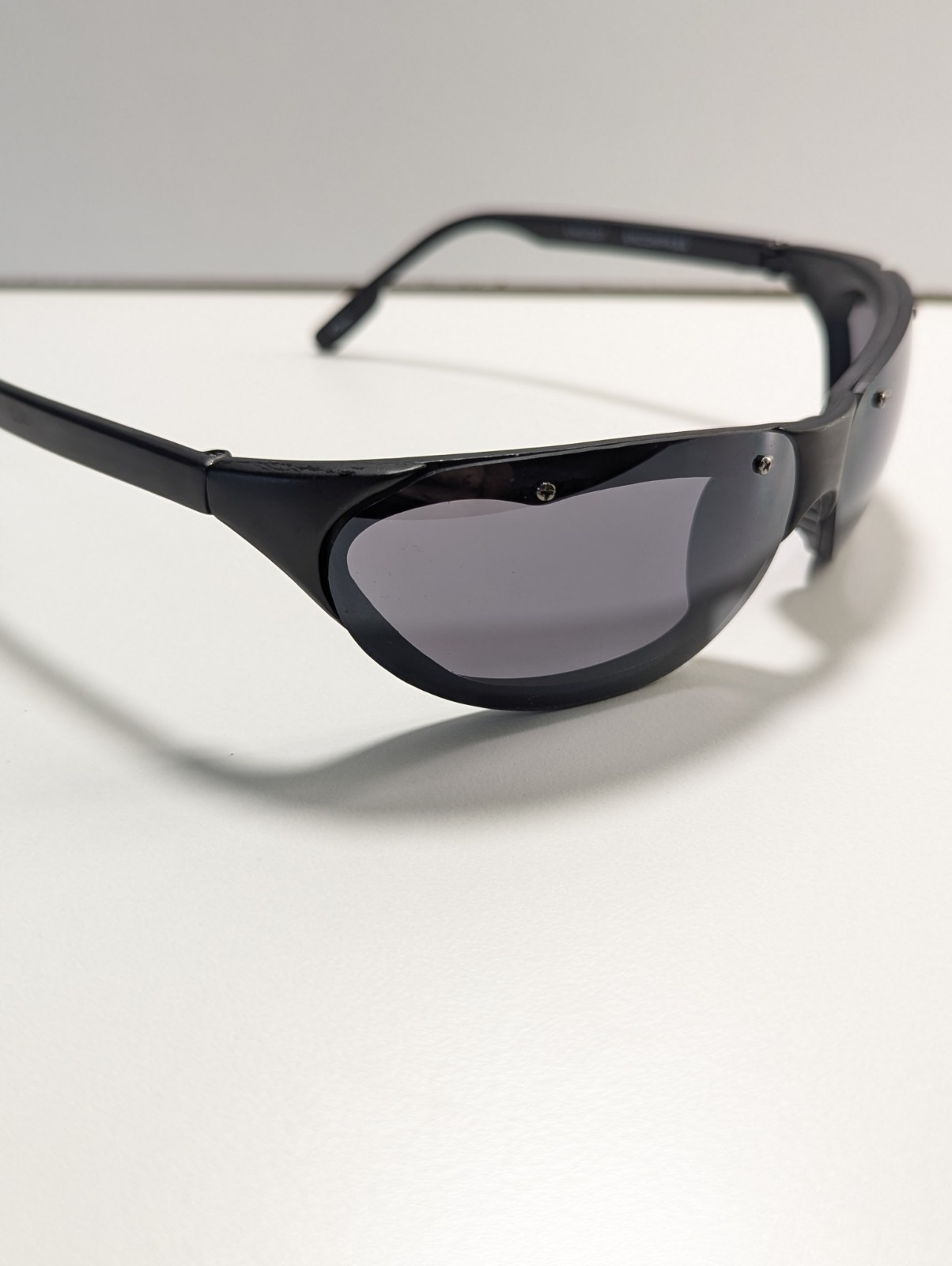 Foster Grant Sunglasses Encompass KM0507 Wrap Black Plastic Frames Purple Lense