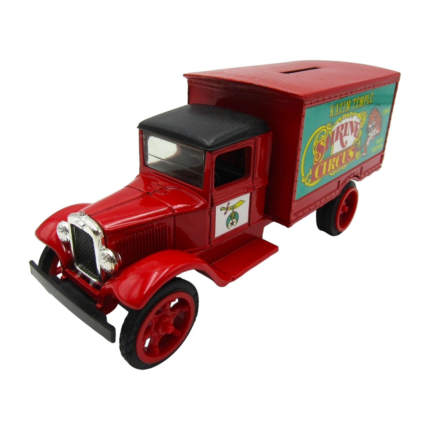 Vintage 1992 ERTL Shrine Circus Truck Coin Bank Wagon 1 1931 Hawkeye Kazim Red