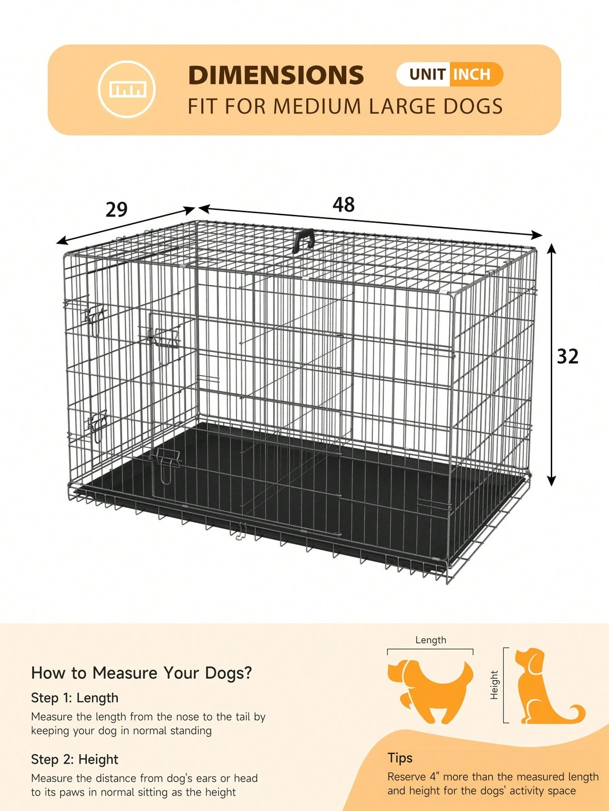 Large Dog 24/30/36/42/48 Crate Dog Cage Dog Kennel Metal Wire Double-Zengb