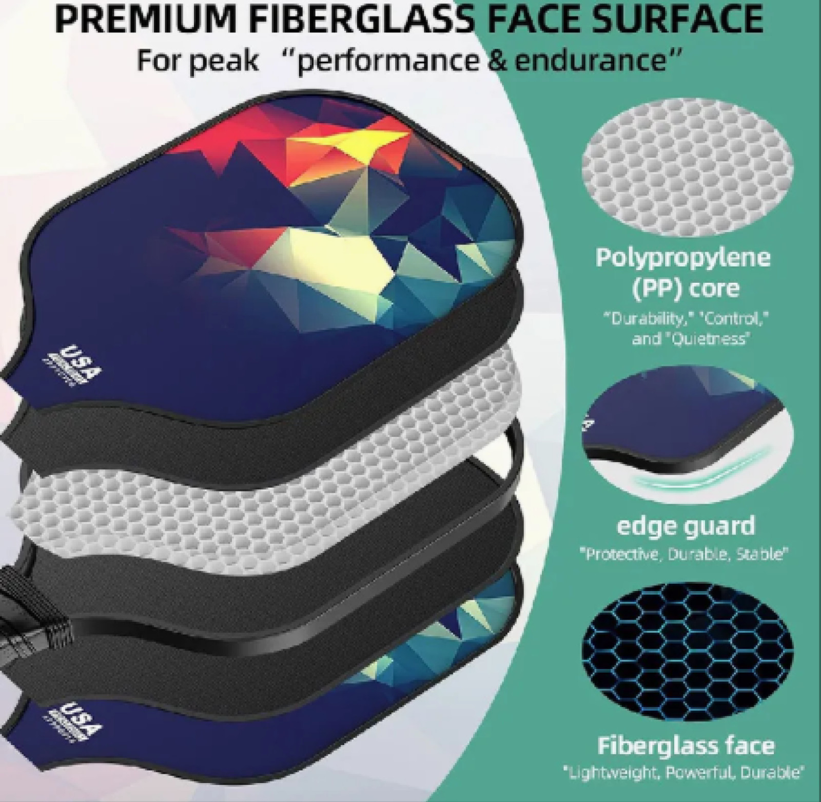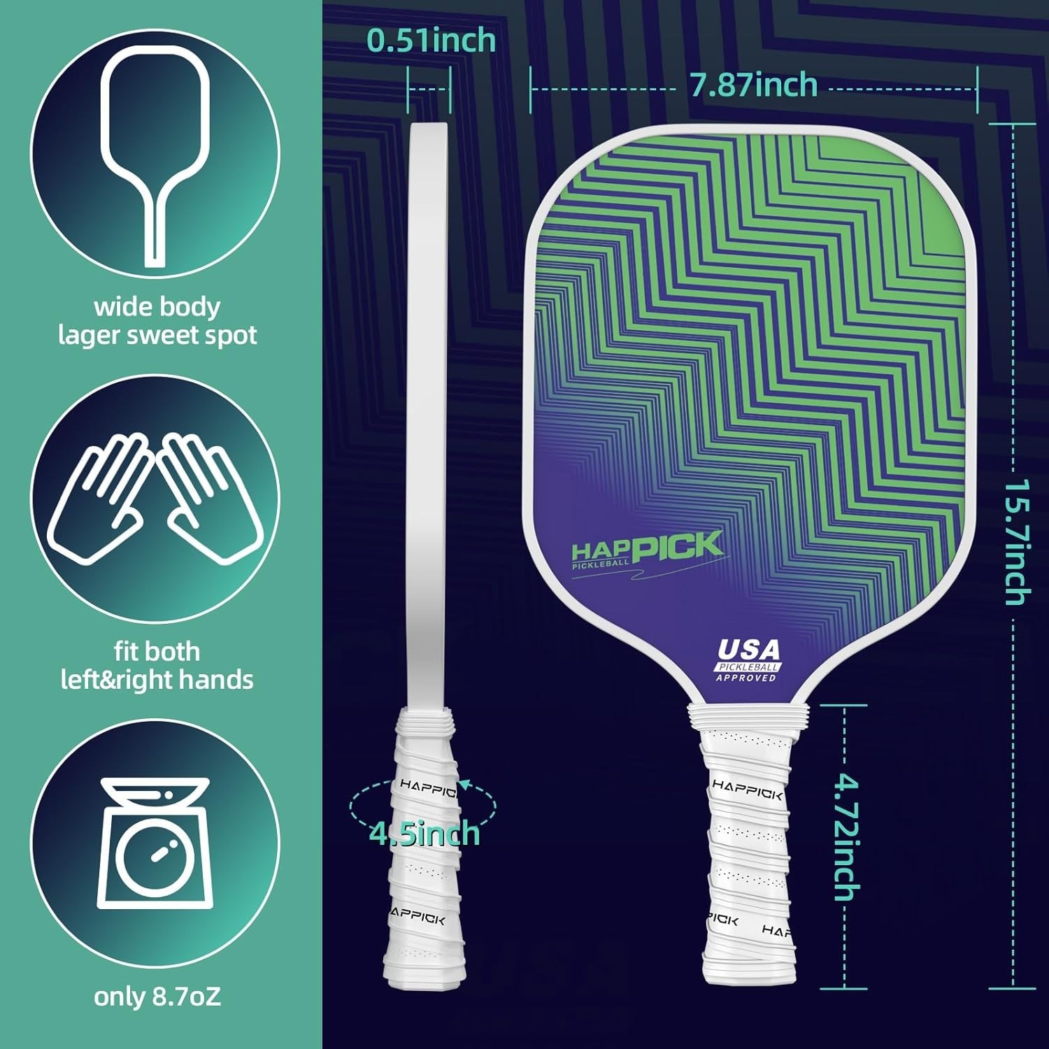 Pickleball Racket Set: 4 Pro Fiberglass Paddles USAPA Approved by Happick