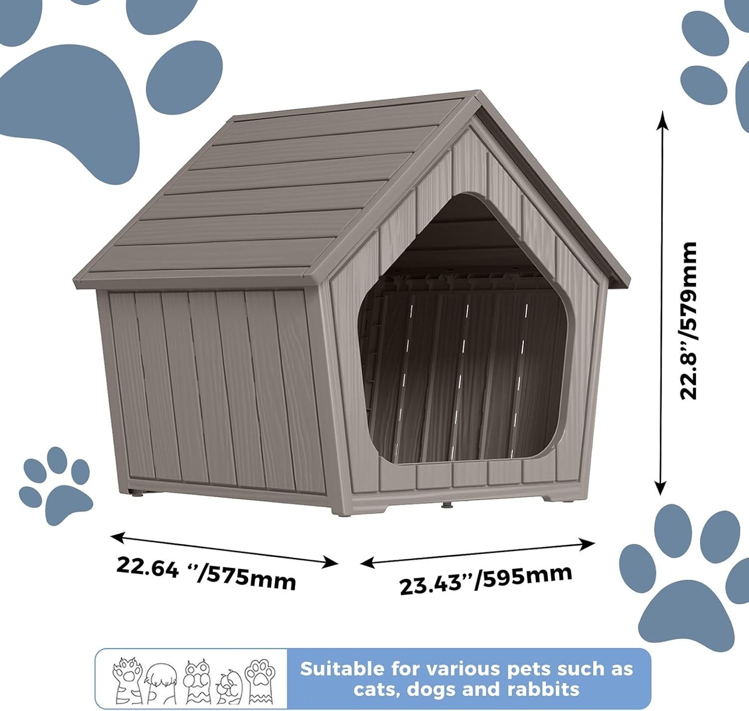 Indoor Outdoor Dog House Kennel Shelter Water Resistant Sturdy Bed Coffee 23in