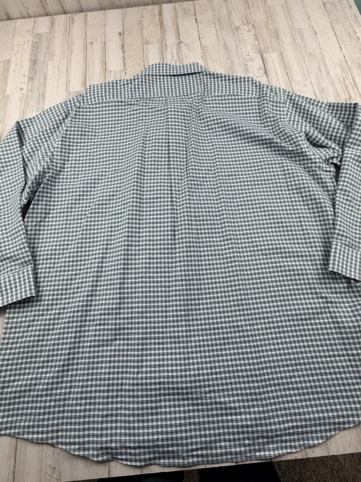 как выглядит Stafford Button Down Oxford Shirt Mens 20, 36-37 Green And White Check Pattern фото