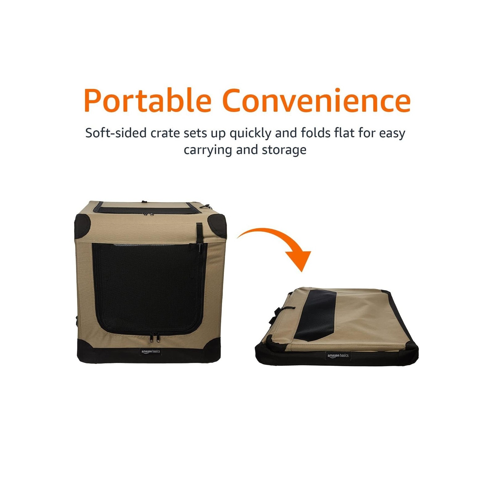 Amazon Basics 2-Door Portable Soft-Sided Folding Soft Dog Travel Crate Kennel...
