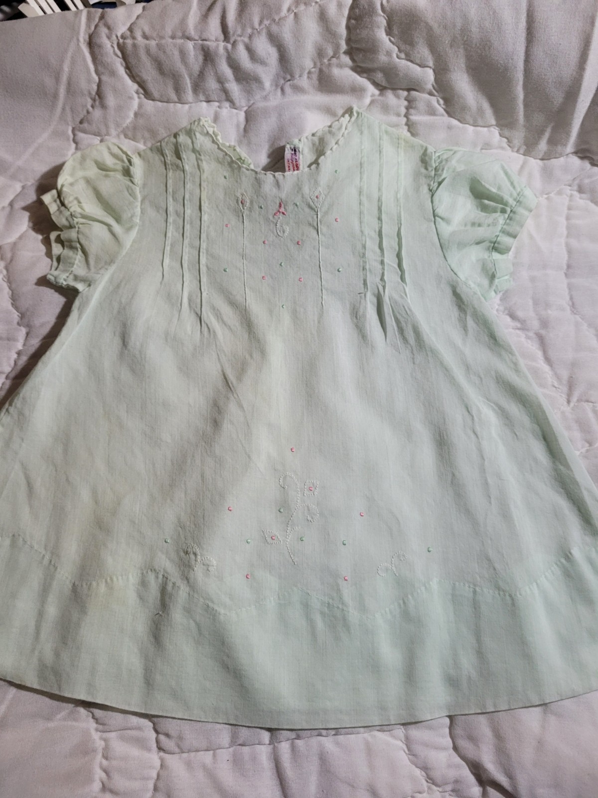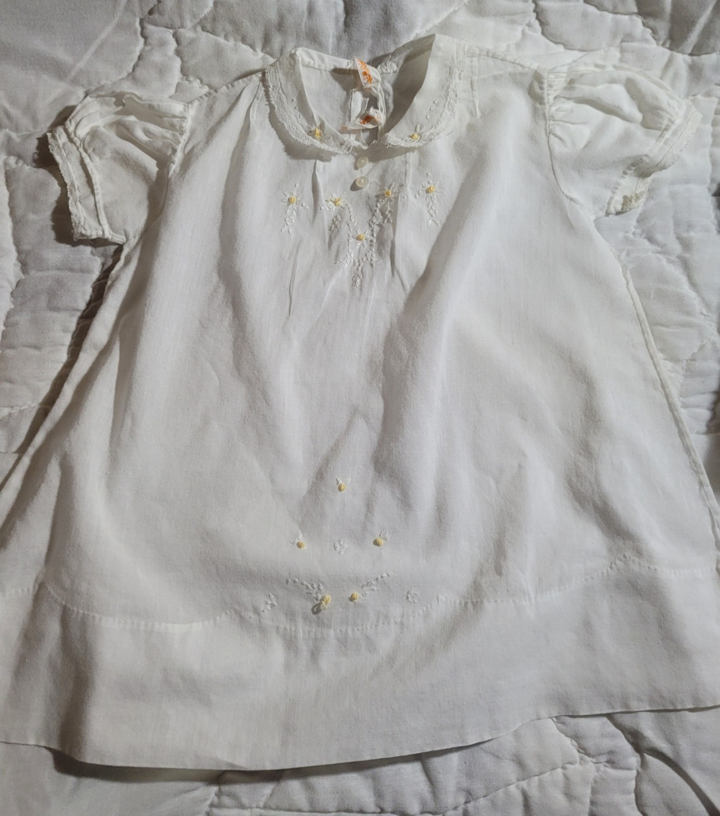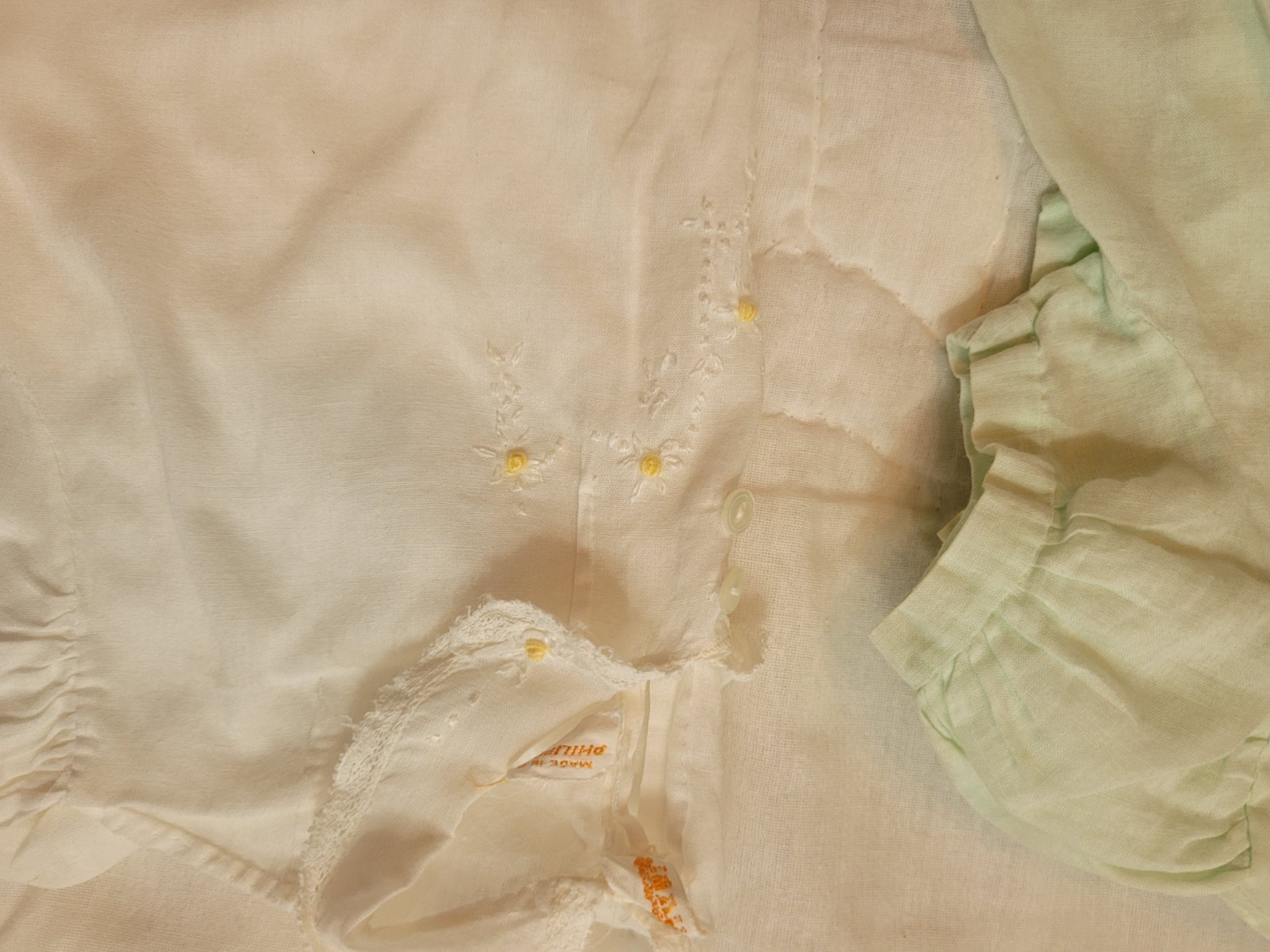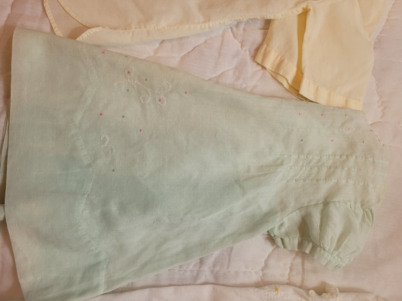 как выглядит 3 Vtg Infant Baby Dresses /Gown /Handmade /EMB Philippines Yellow,Green,White фото