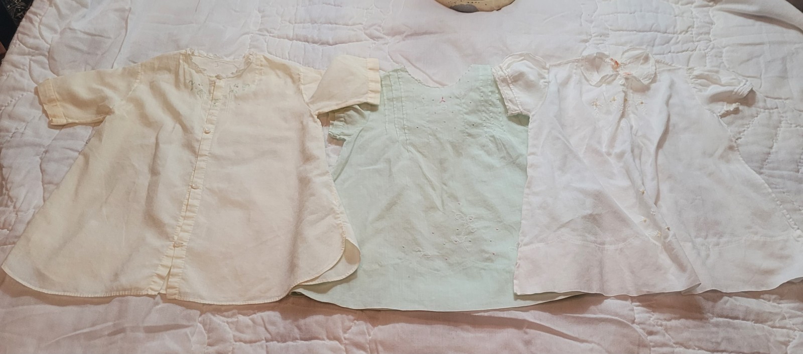 3 Vtg Infant Baby Dresses /Gown /Handmade /EMB Philippines Yellow,Green,White