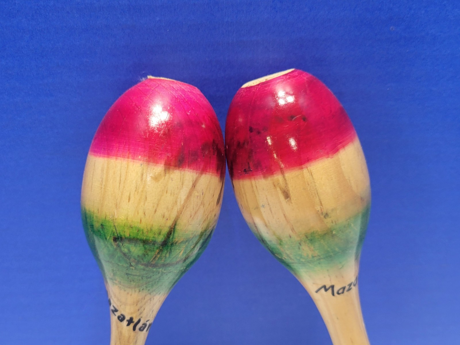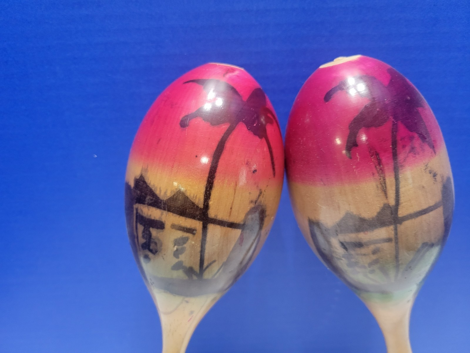 Pair Vintage Wood Maracas from Mazatlan, Mexico
