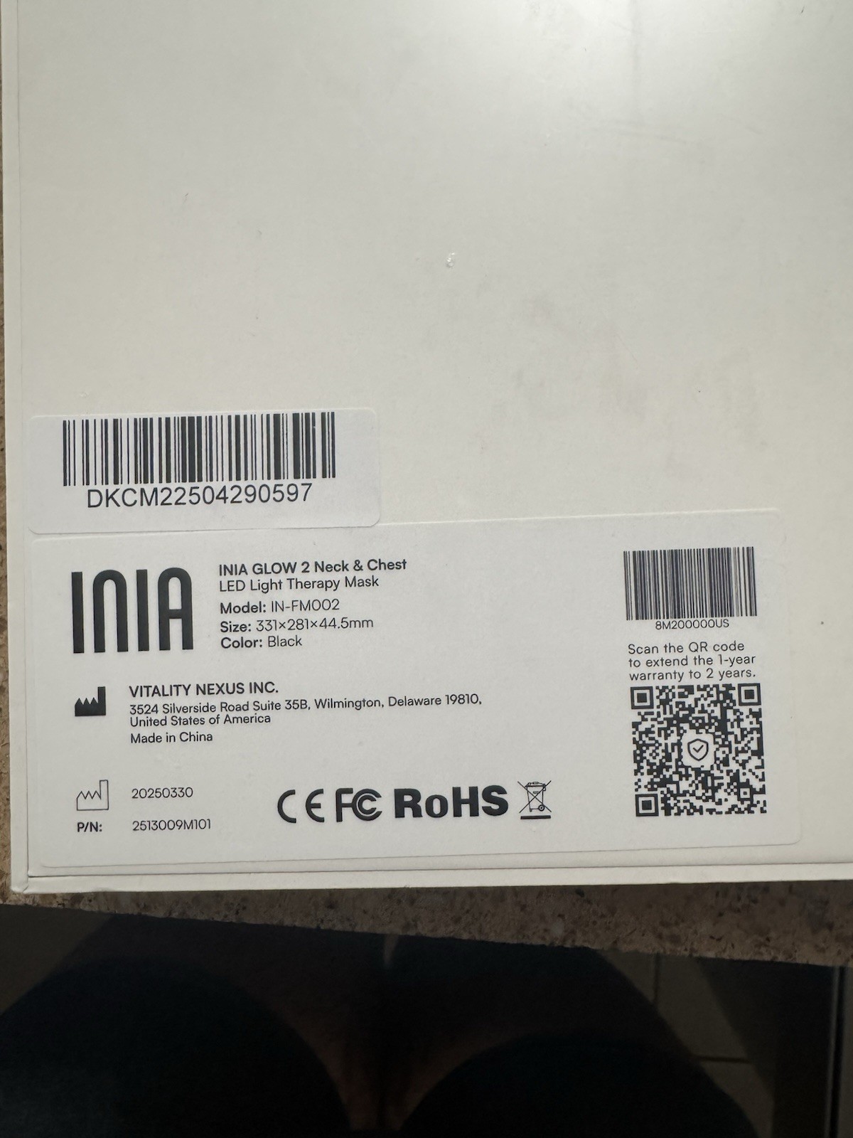 INIA GLOW 2 Neck Chest LED Light Therapy Mask Model: IN-FM002