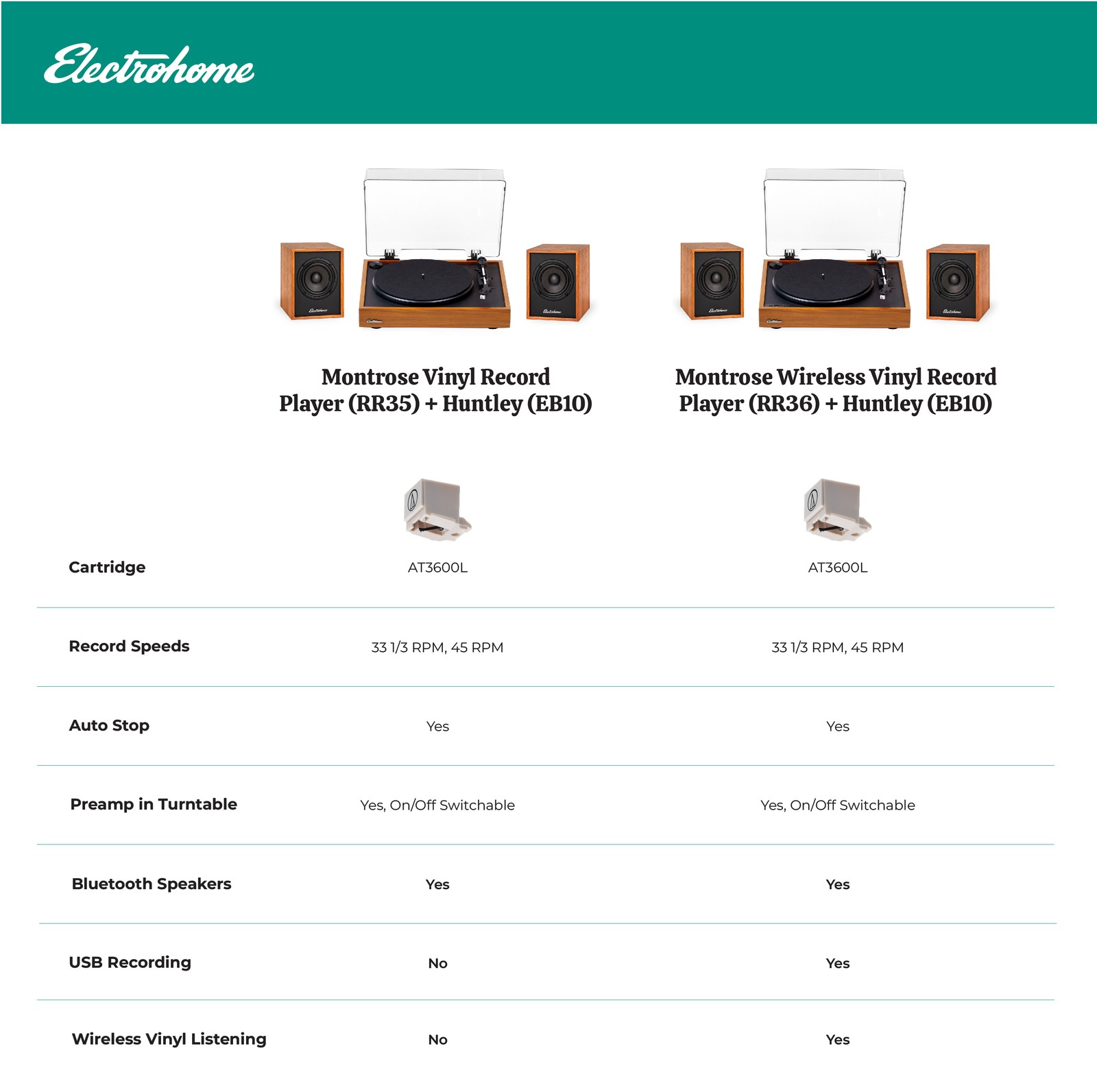 Electrohome Montrose Record Player Huntley- Powered Bluetooth Speakers, Teak