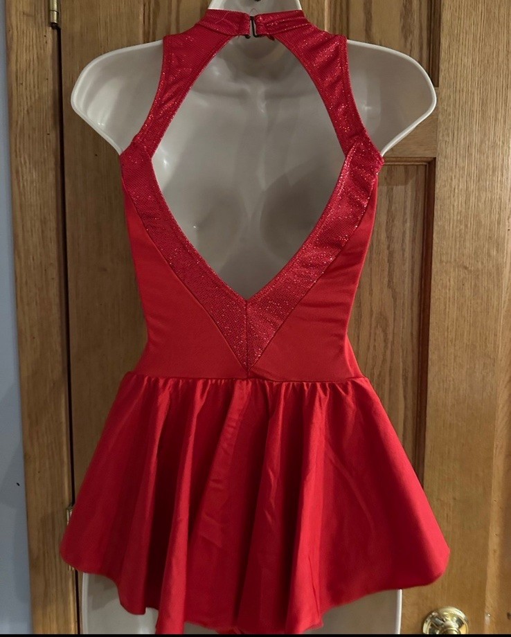 как выглядит The Line Up Midnight Red Rhinestone Figure Skating Dress Dance Costume фото