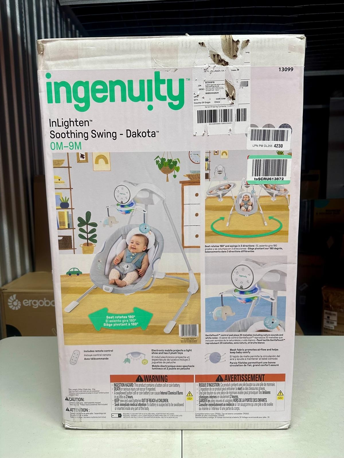 Ingenuity InLighten Soothing Baby Swing 180 Rotating Lights, Music Dakota