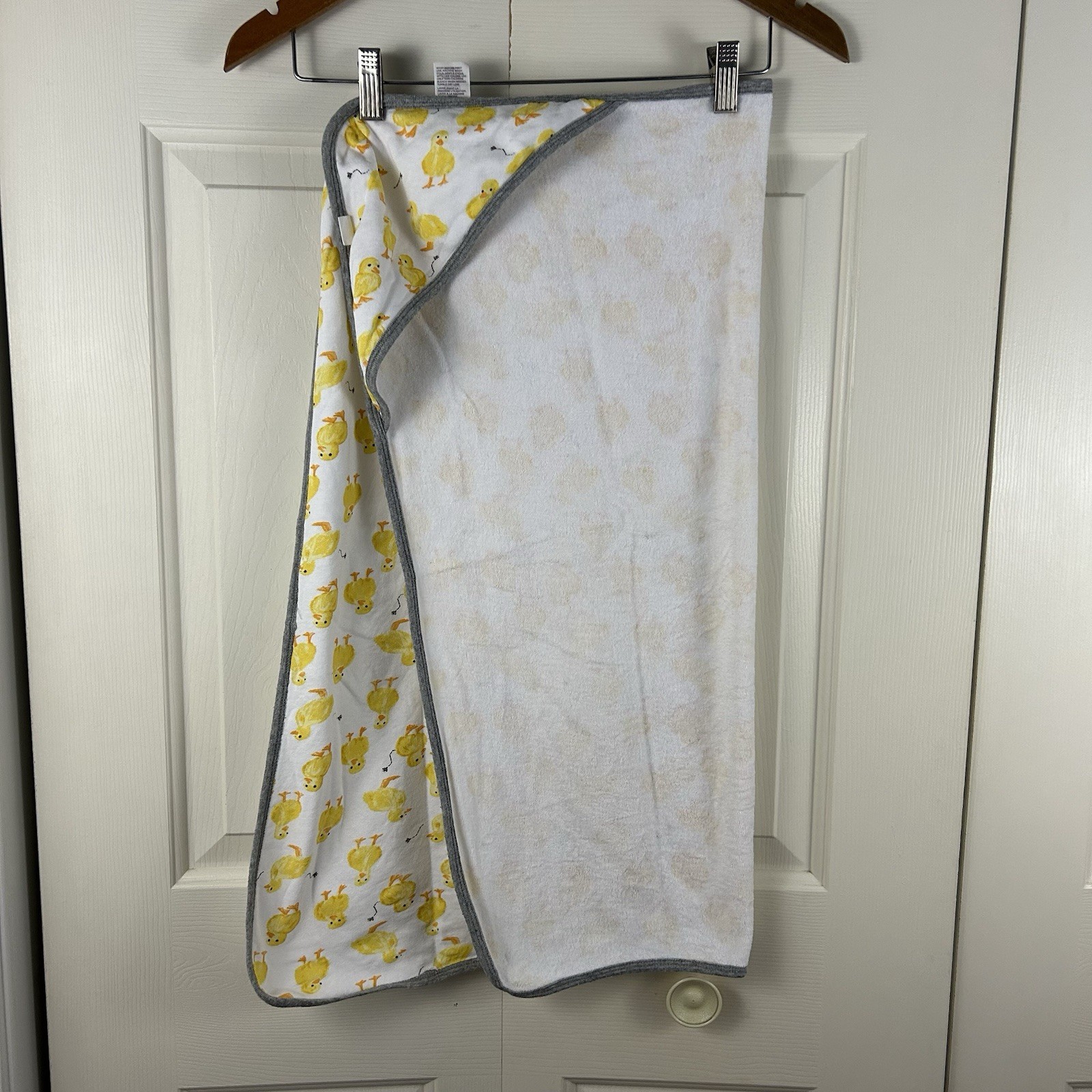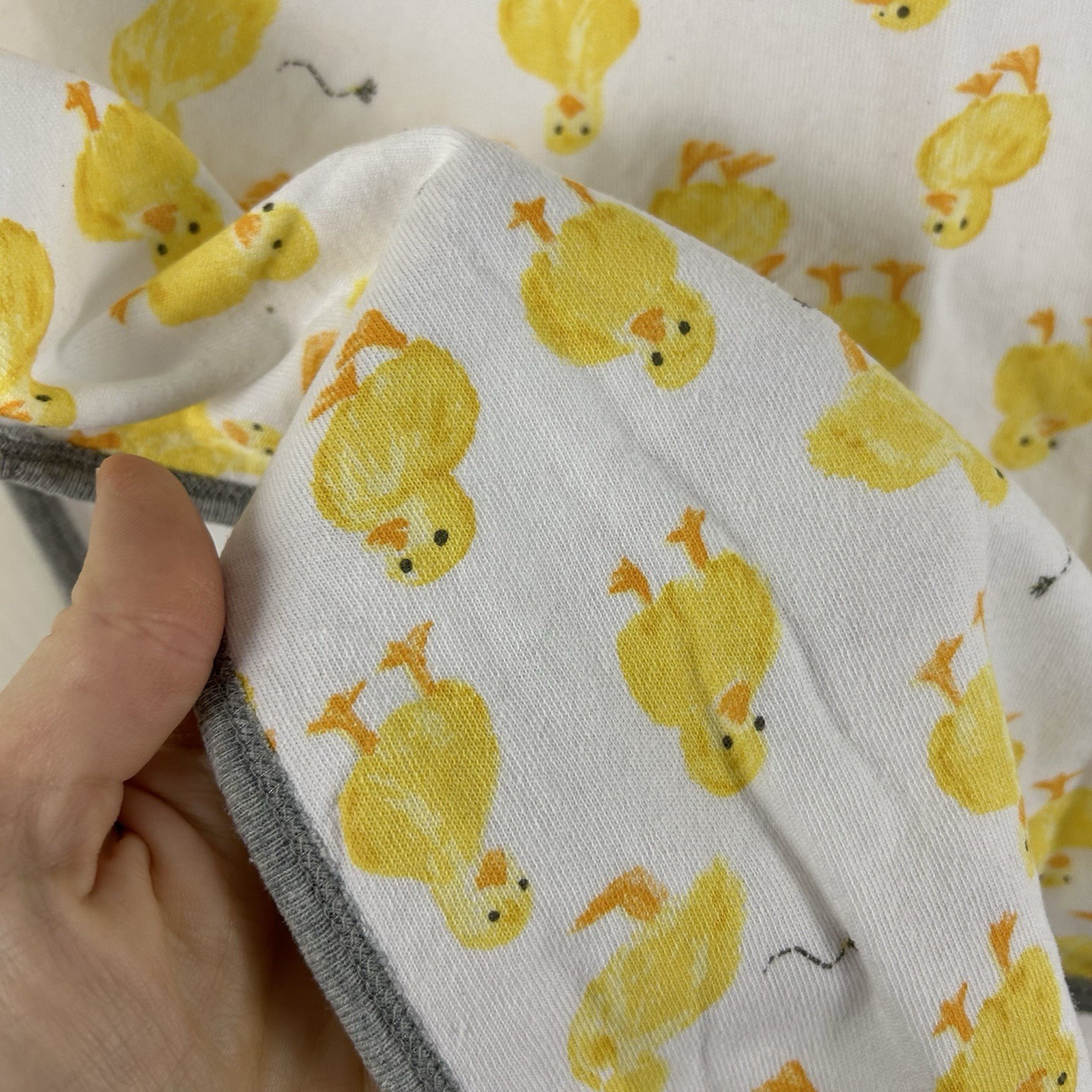 Burt's Bees Baby Hooded Towel Terry Cloth Duck Print Gray White Yellow Duckling