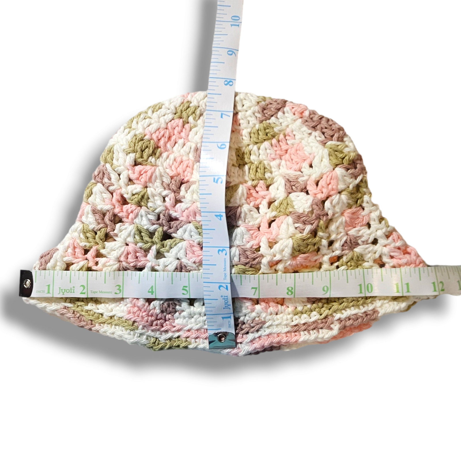 как выглядит EUC Hand Knitted Hat Beanie Skull Cap Toboggan Size 12x7.5 White Pink Green фото