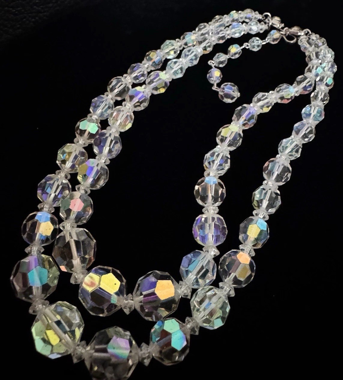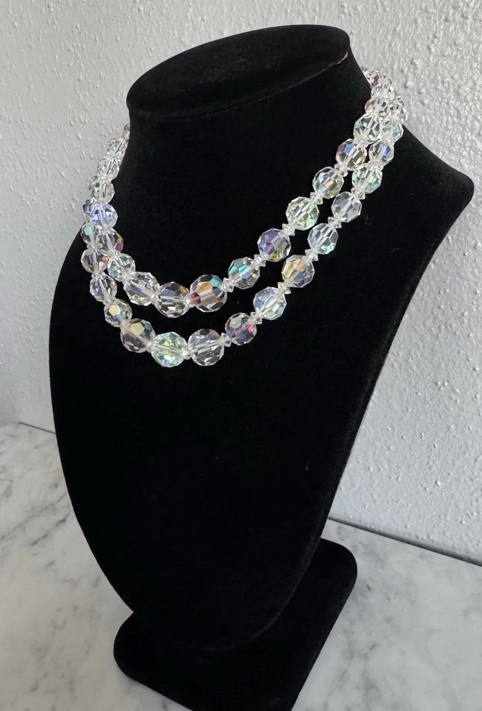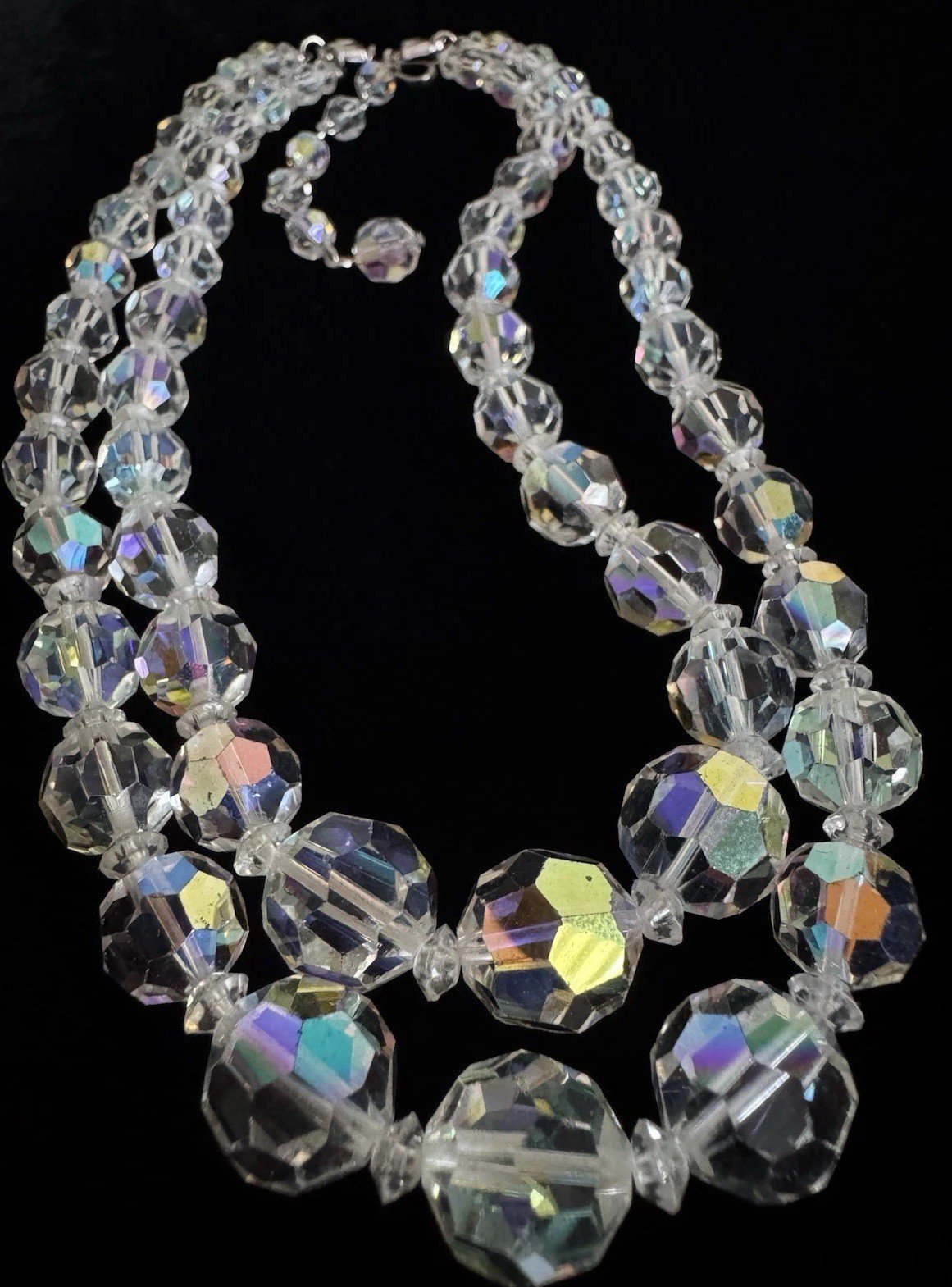 Vintage Aurora Borealis Double Strand Graduated Crystal Bead Choker Necklace 13