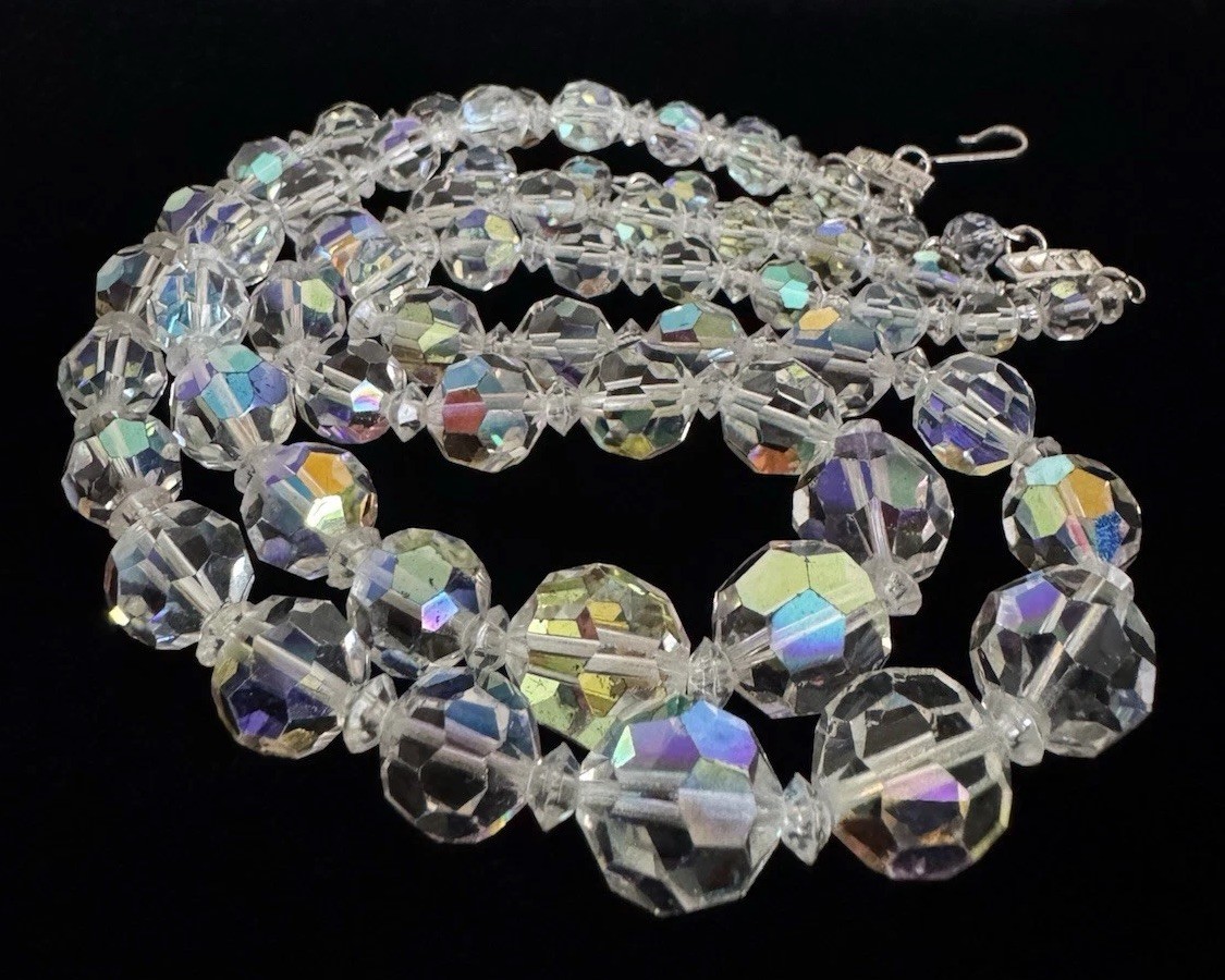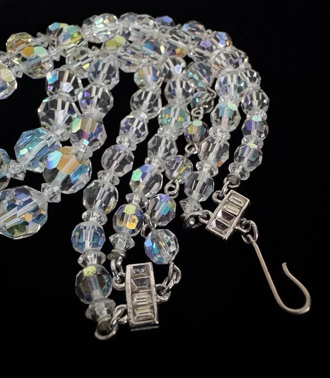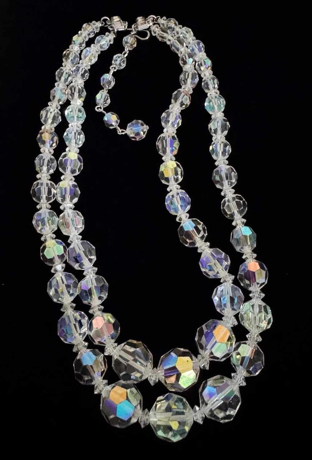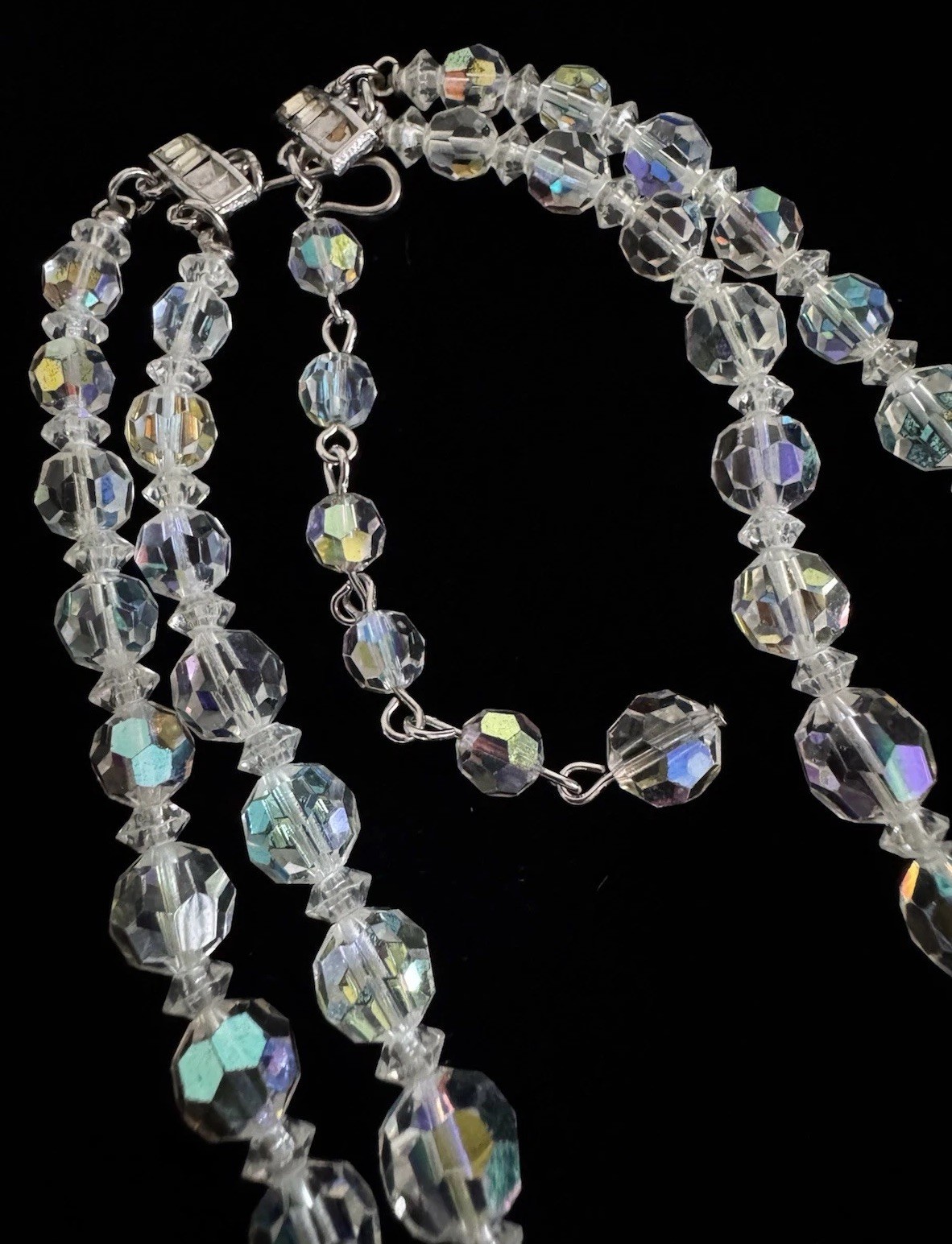 Vintage Aurora Borealis Double Strand Graduated Crystal Bead Choker Necklace 13