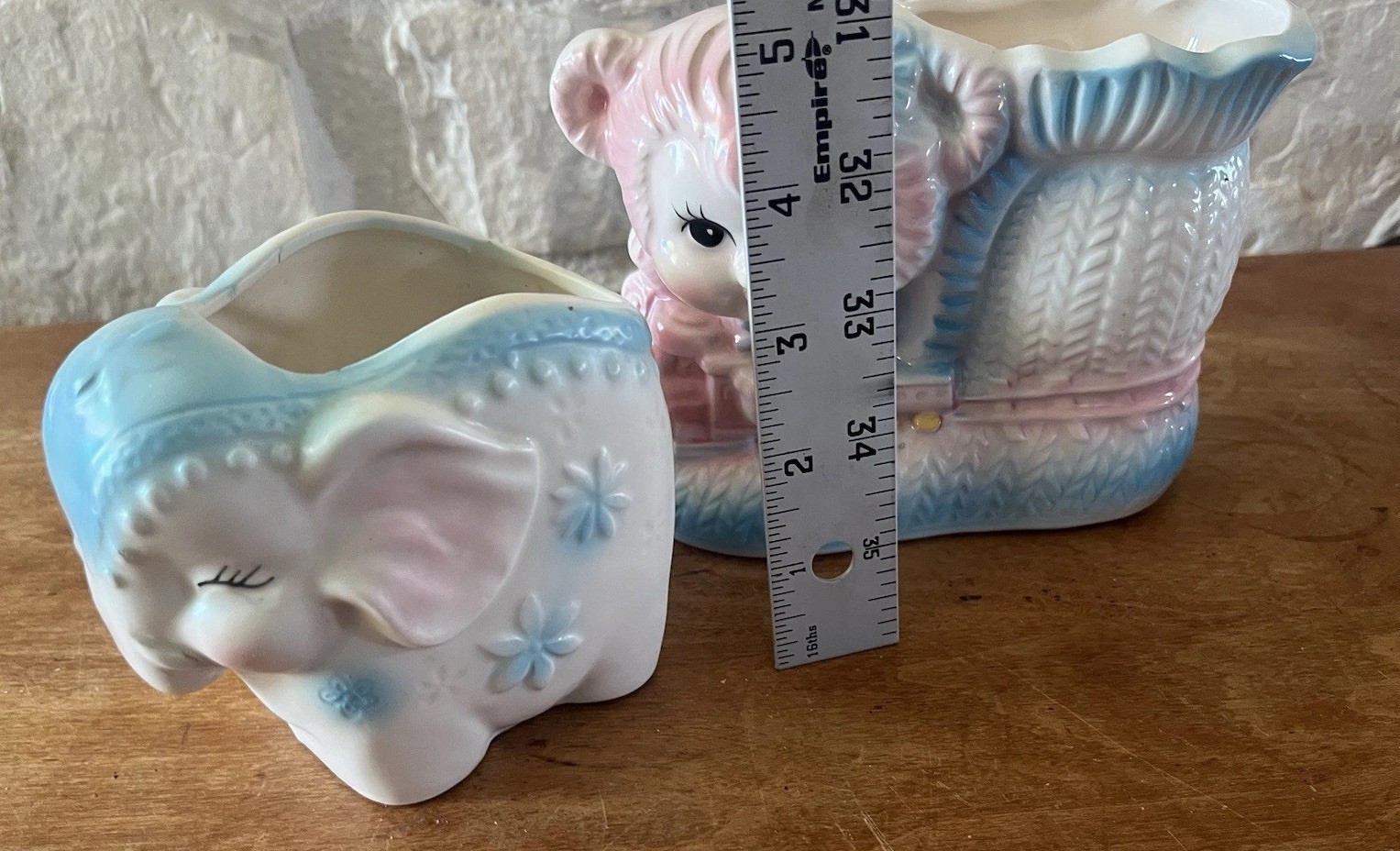 • Inarco Ceramic Elephant Rubens Bear Train Planter Blue Pink Nursery 60s Kitsch