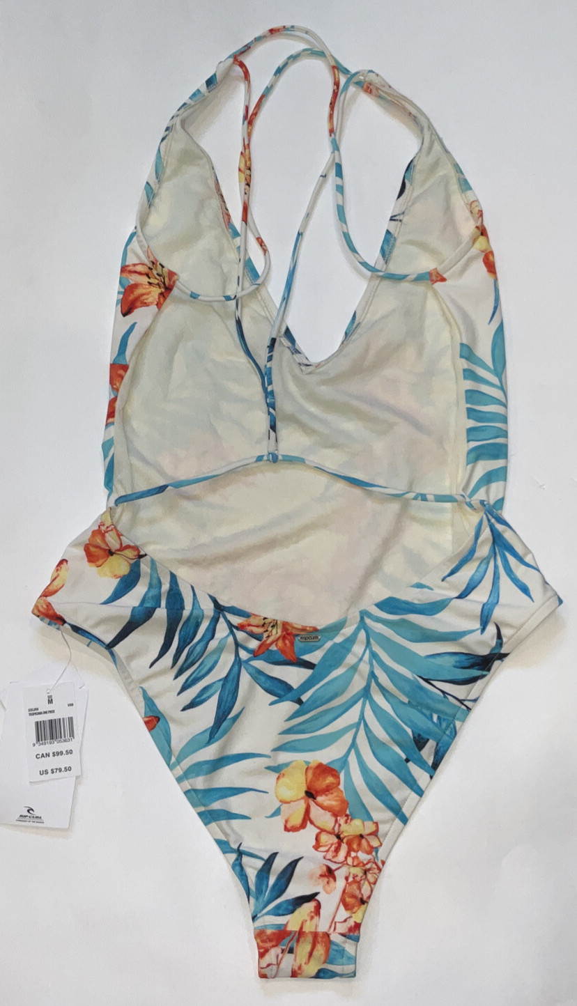 RIP CURL Women's Medium Natural White Blue Floral Tropic One Piece Swim Suit New