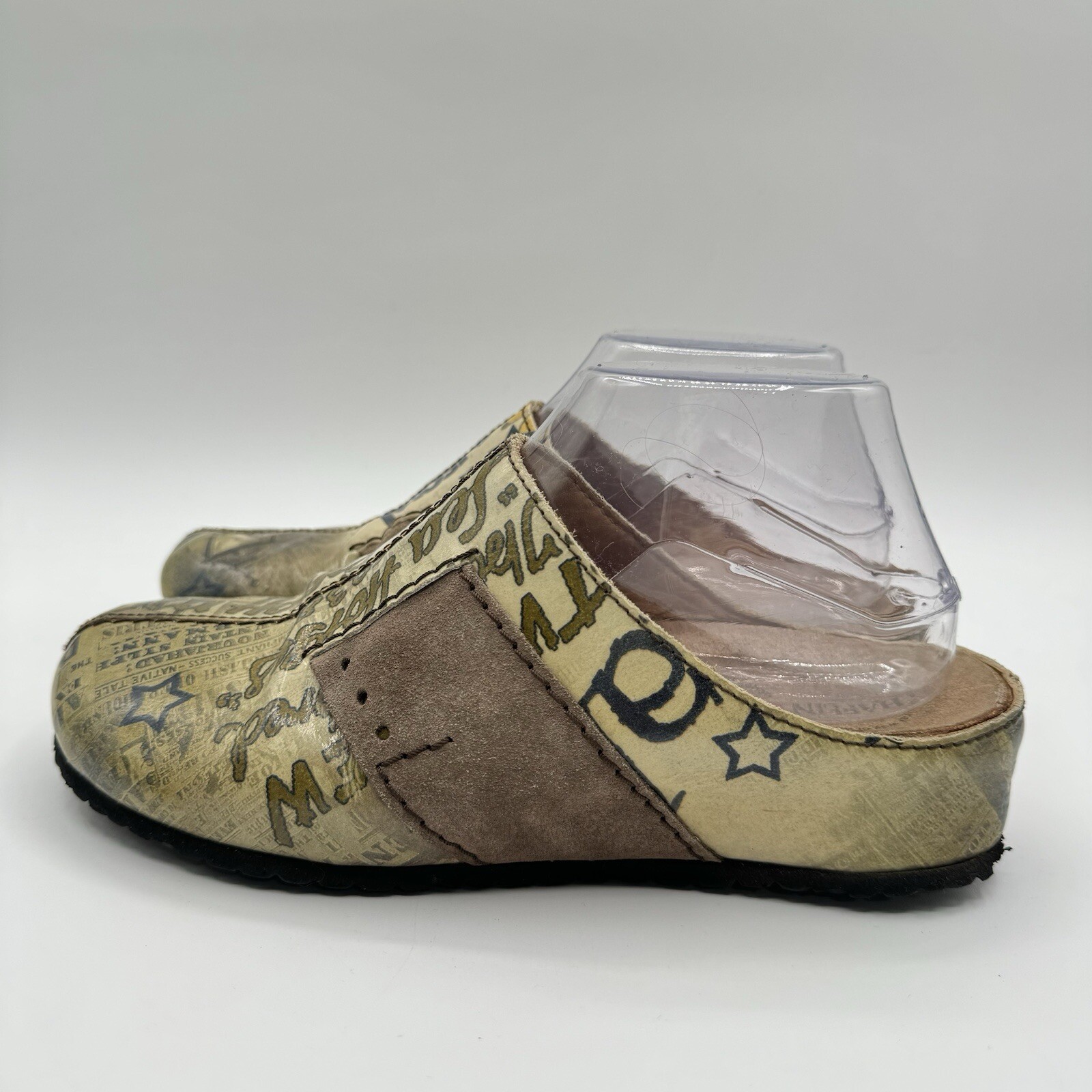 как выглядит Haflinger Womens Bohemian College Print Leather Mules Slip On Split Toe 39 US 8 фото
