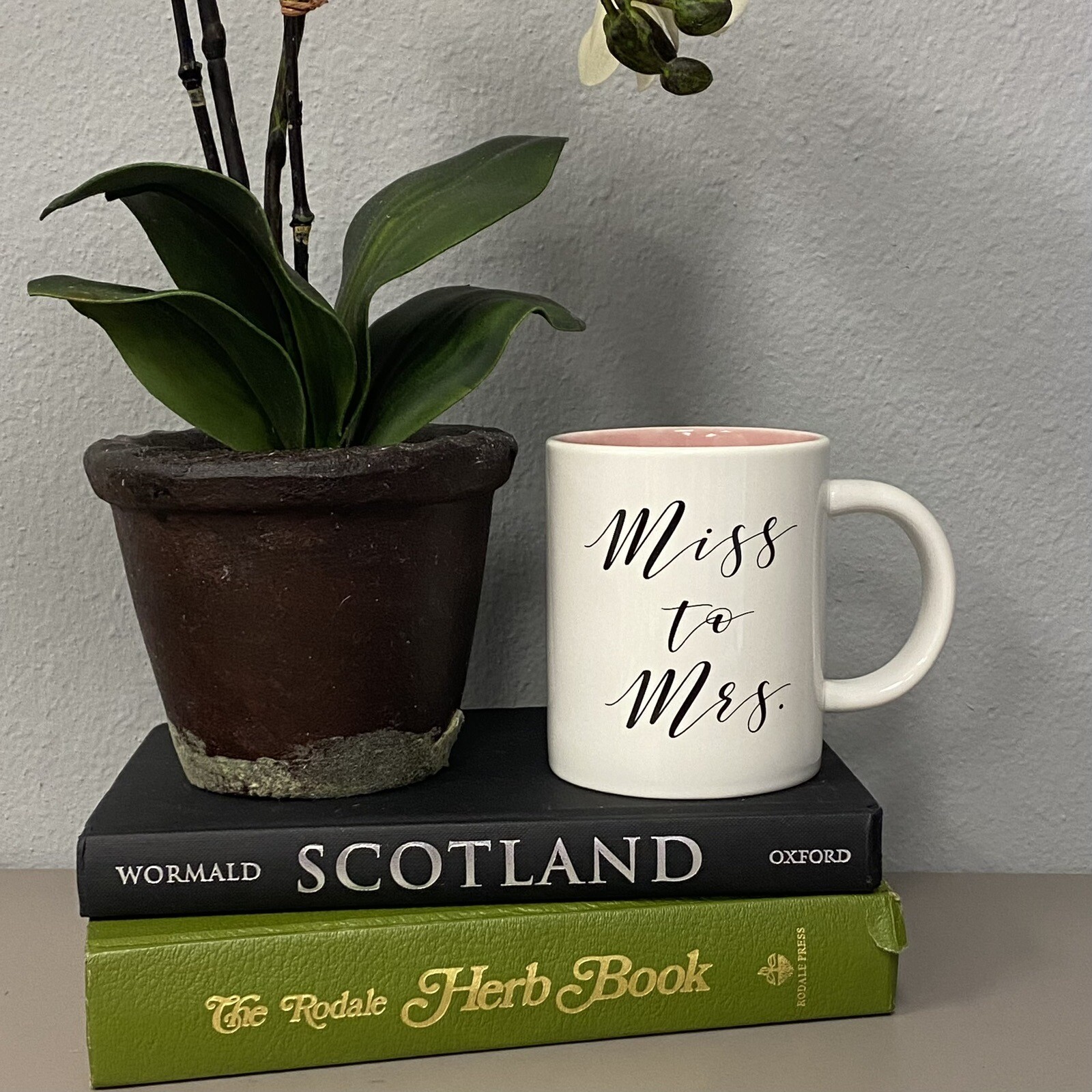 Miss to Mrs Engagement Wedding Gift White w/ PINK INTERIOR Bride To Be Mug