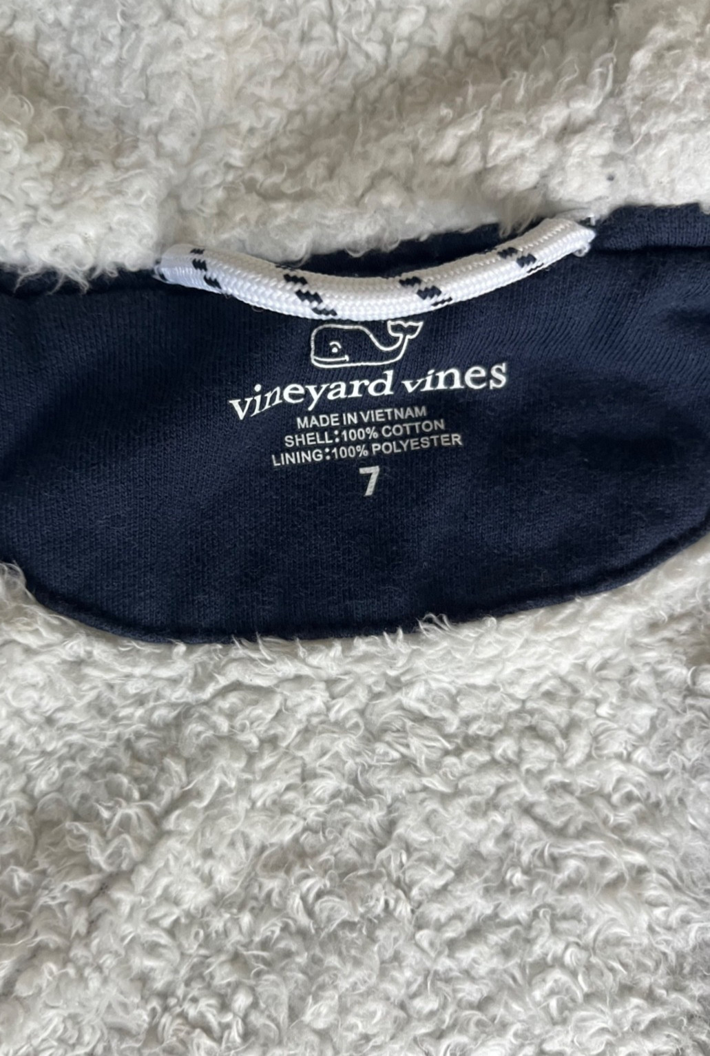 как выглядит Vineyard Vines Youth 7 Sherpa Lined Full Zip Hoodie Sweatshirt Navy Blue Whale фото