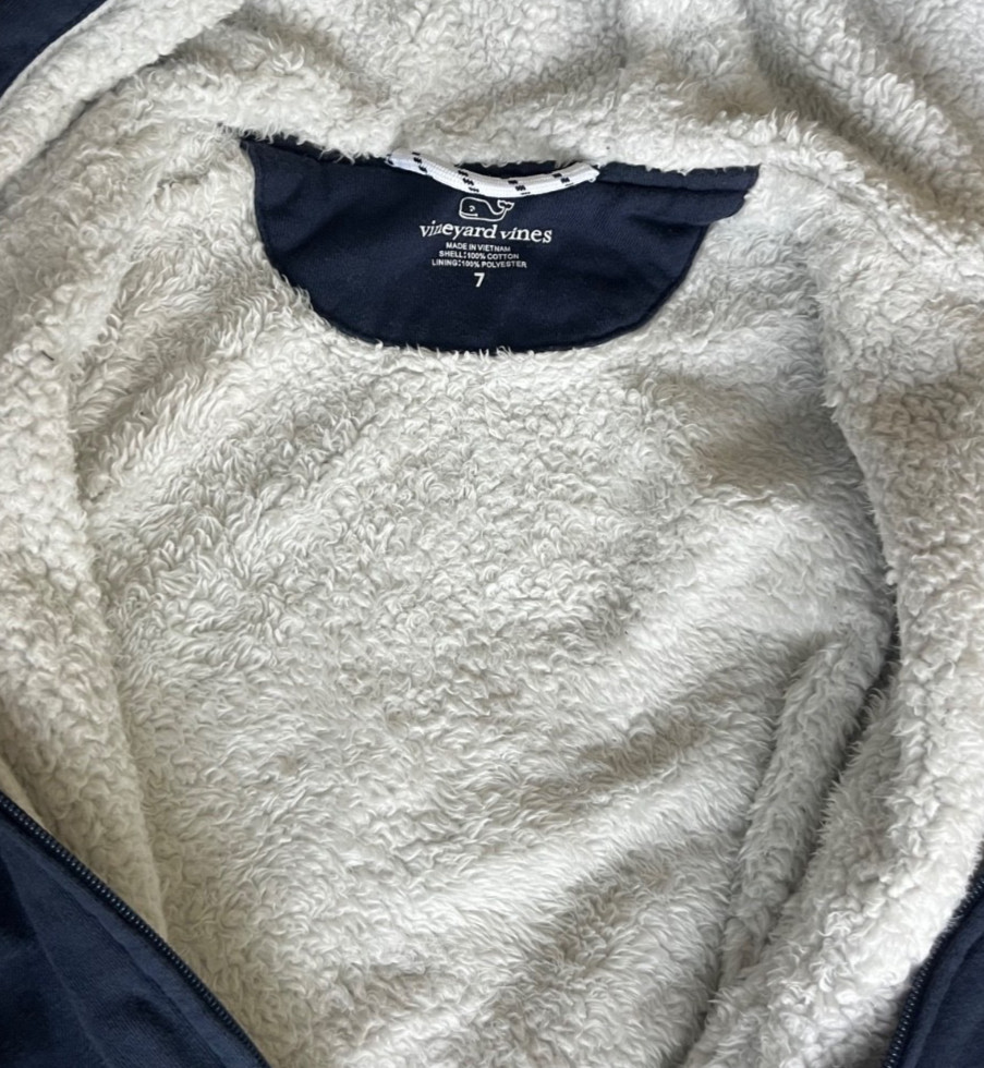 Vineyard Vines Youth 7 Sherpa Lined Full Zip Hoodie Sweatshirt Navy Blue Whale
