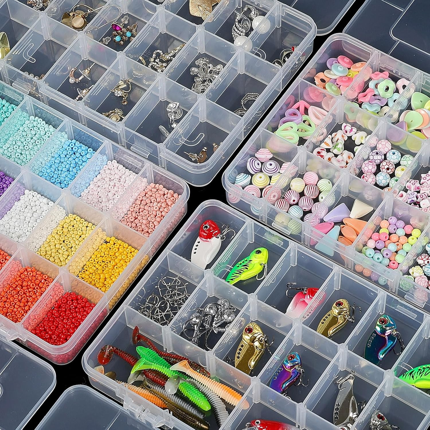 3-Pack Clear Plastic Organizer Box with Adjustable Dividers for Crafts and More