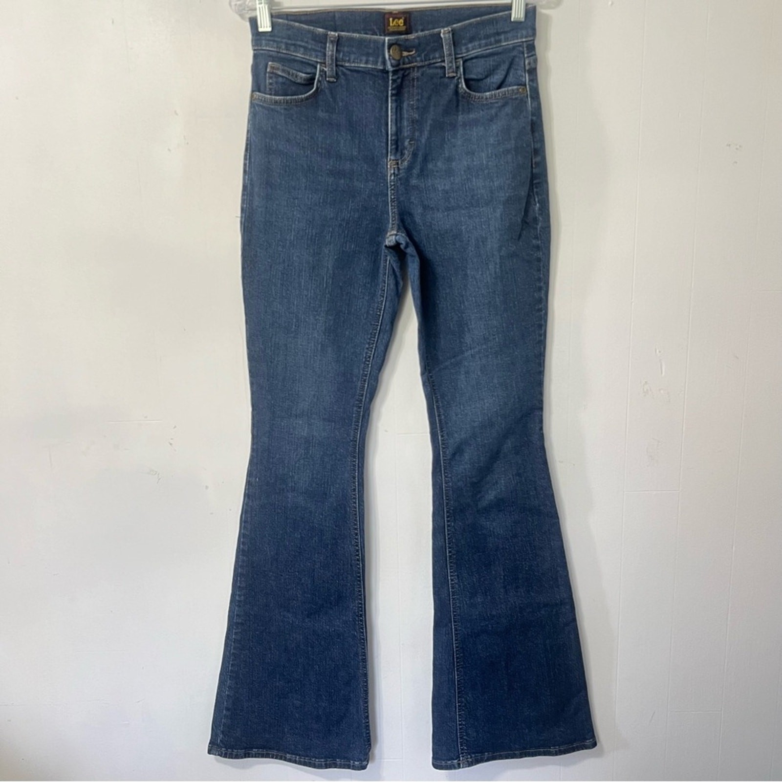 как выглядит Vintage 90 s Lee High Rise Flare Bell Bottom Western Rodeo Denim Jeans 6 Long фото