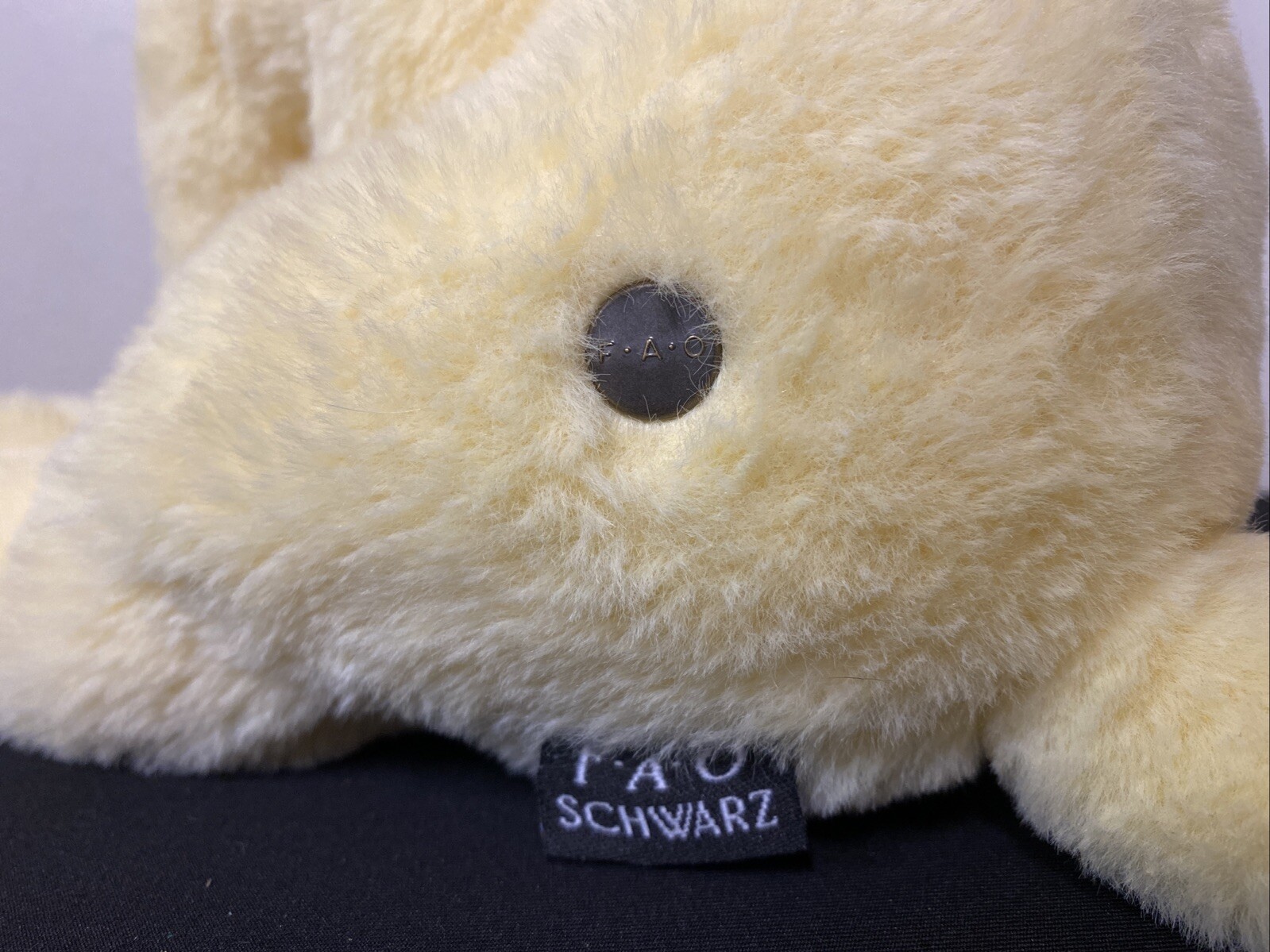 как выглядит Vintage FAO Schwarz Biscuit 12 Yellow Dog Plush Stuffed Animal Red Collar фото