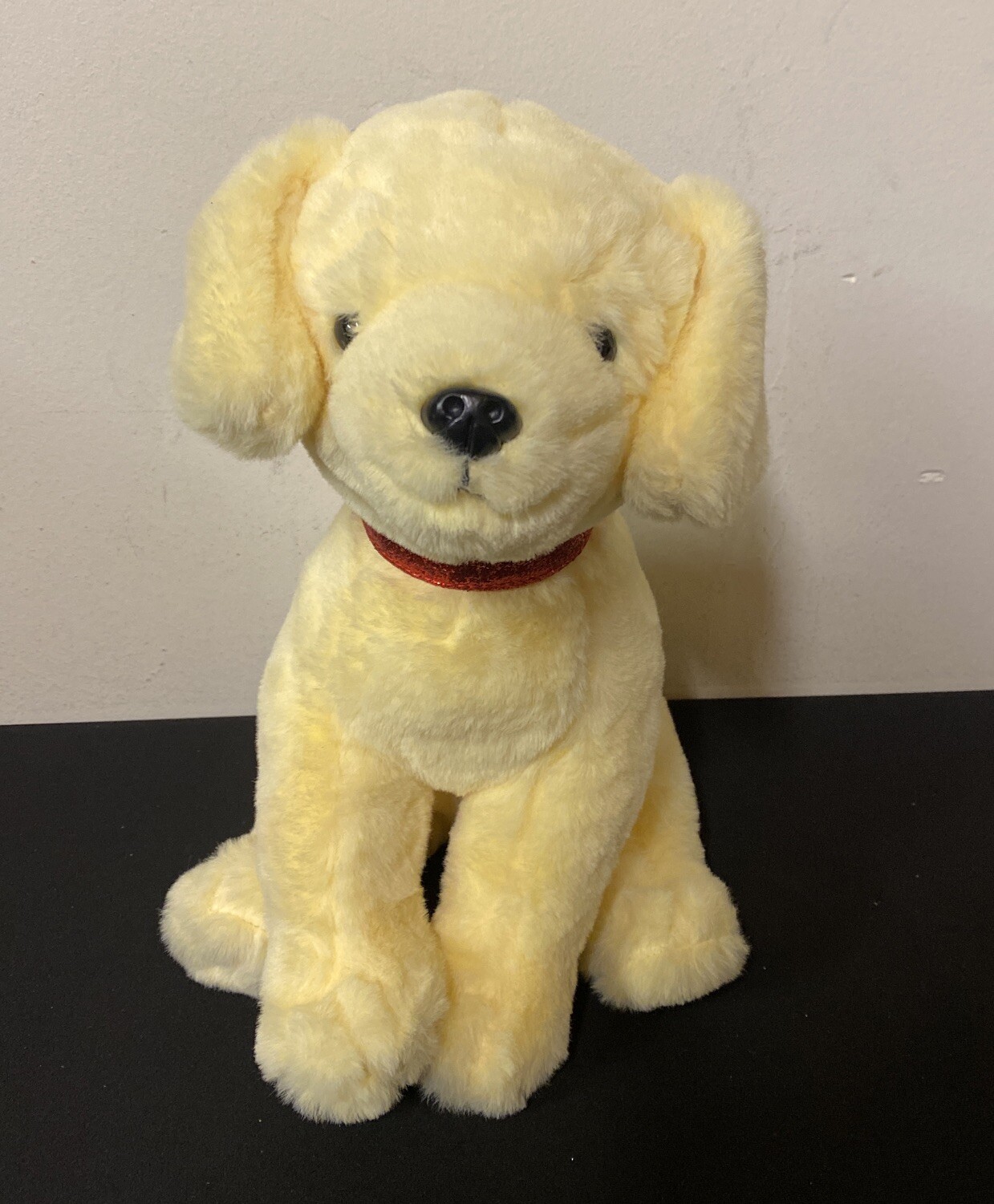 Vintage FAO Schwarz Biscuit 12 Yellow Dog Plush Stuffed Animal Red Collar