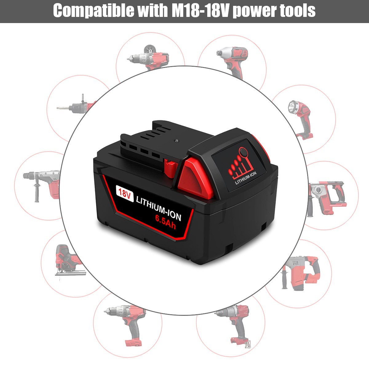 как выглядит 6.5AH M18 For Milwaukee 18V Lithium XC 6.0 Extended Capacity Battery 48-11-1860 фото