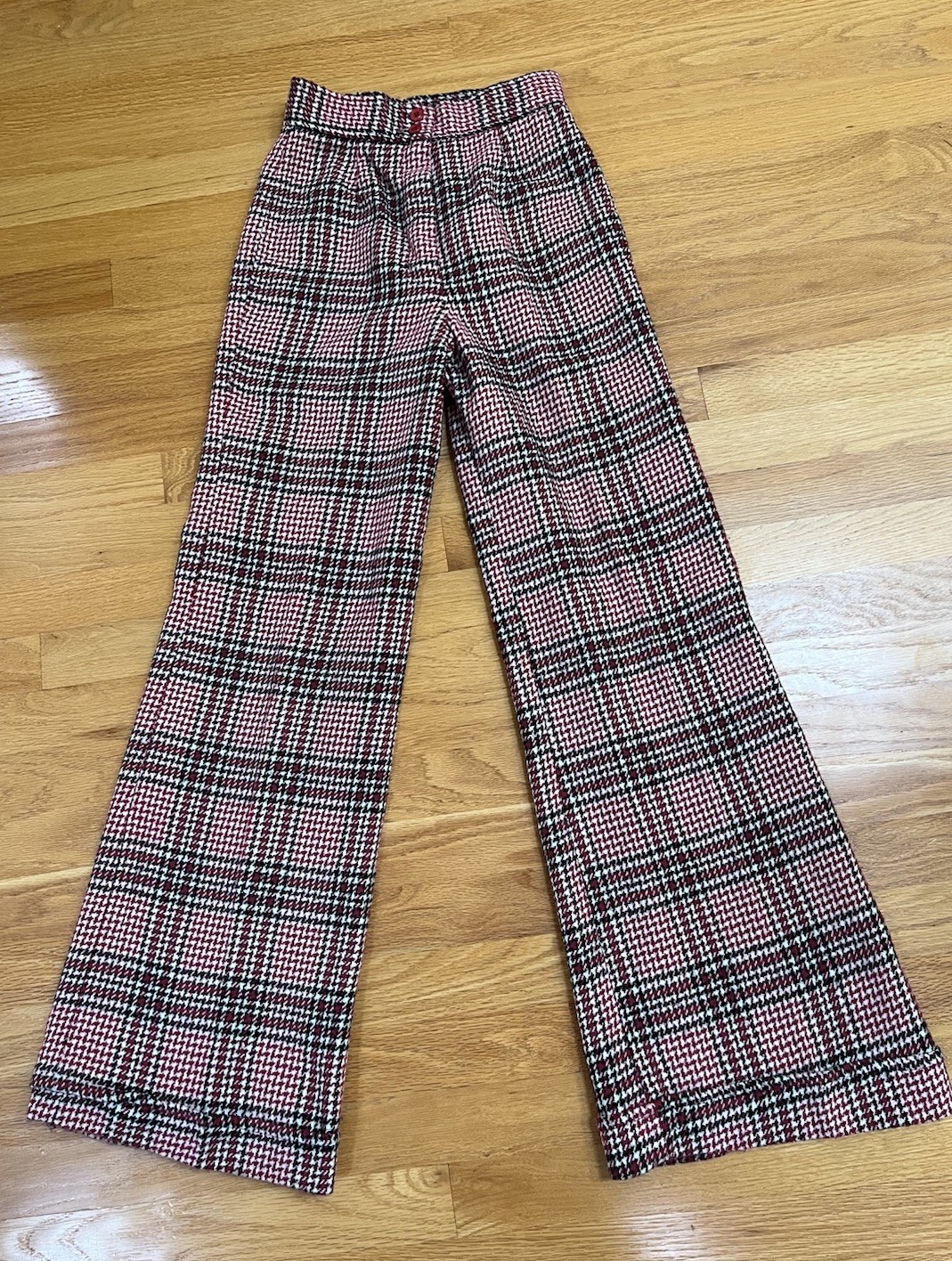 Miss Holly VINTAGE 70's Plaid Bell Bottom Pants 22 Waist Pink Wide Washable XXS
