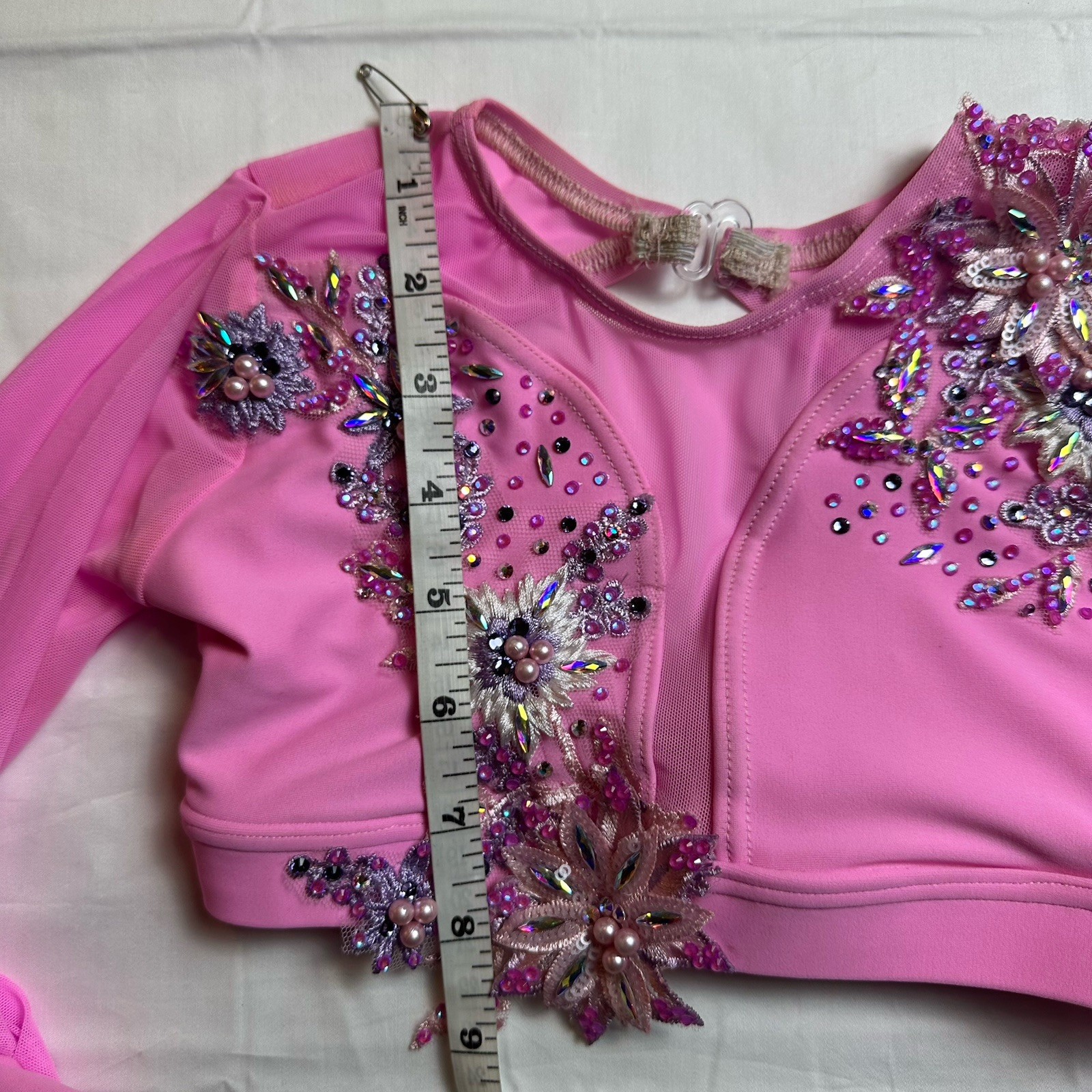 Custom Solo 2 pc Pink Rhinestone Pearl Embellished Mesh Sleeves Child Small