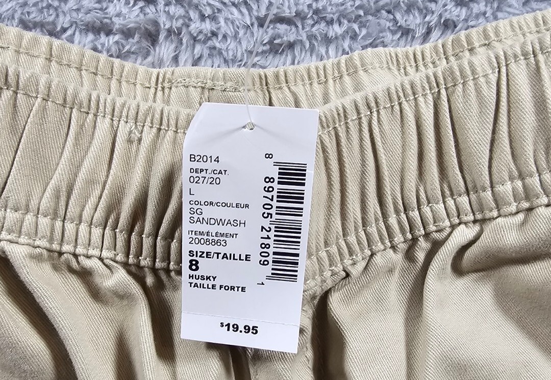 Children's Place Boy s Cargo Pants Uniform Flax Beige Adj Waist Sz 8 Husky NWT