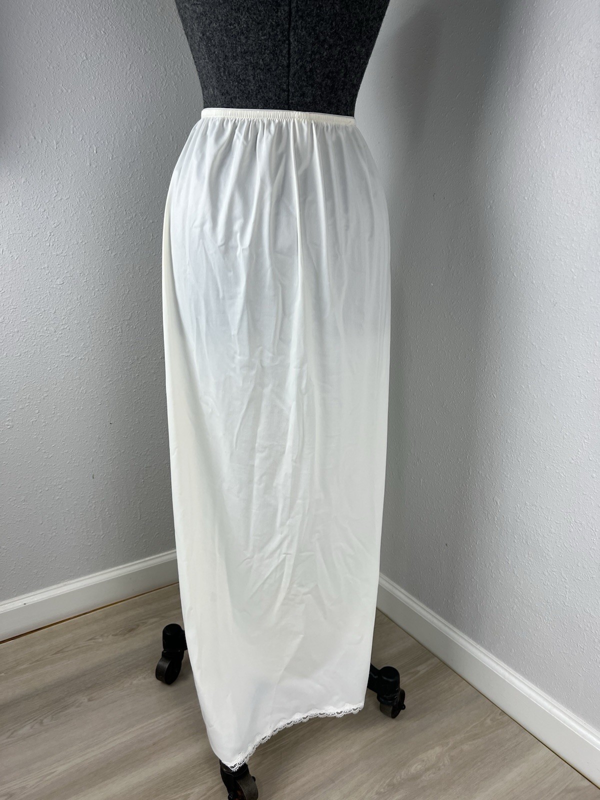как выглядит Vintage Vanity Fair Ivory Slip Skirt Lace Bow Slit Nylon Medium LL Made in USA фото