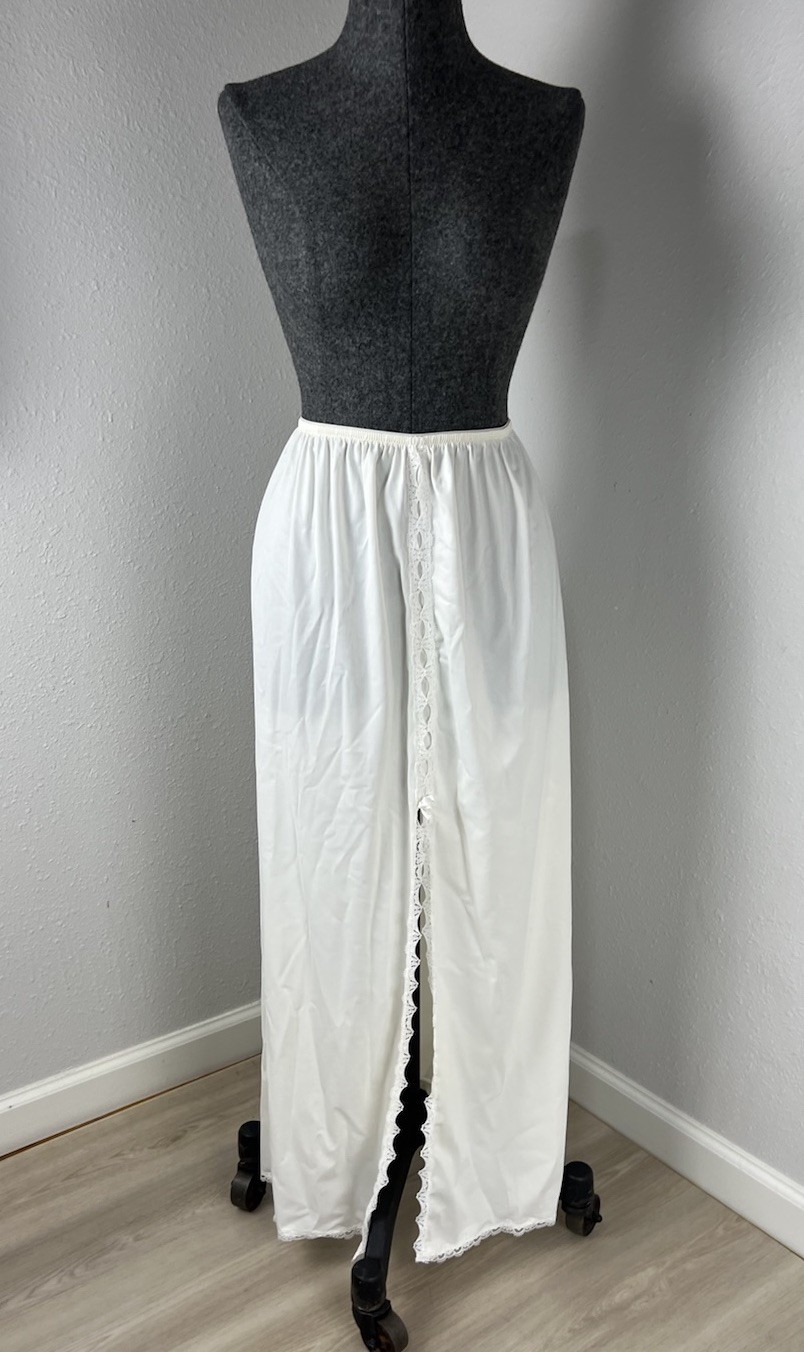 Vintage Vanity Fair Ivory Slip Skirt Lace Bow Slit Nylon Medium LL Made in USA