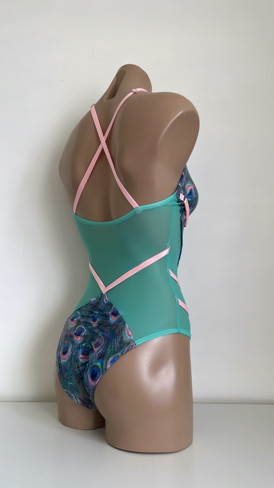 Schminke Hybrid bodysuit pole dance wear mesh wet-look peacock hologram mesh