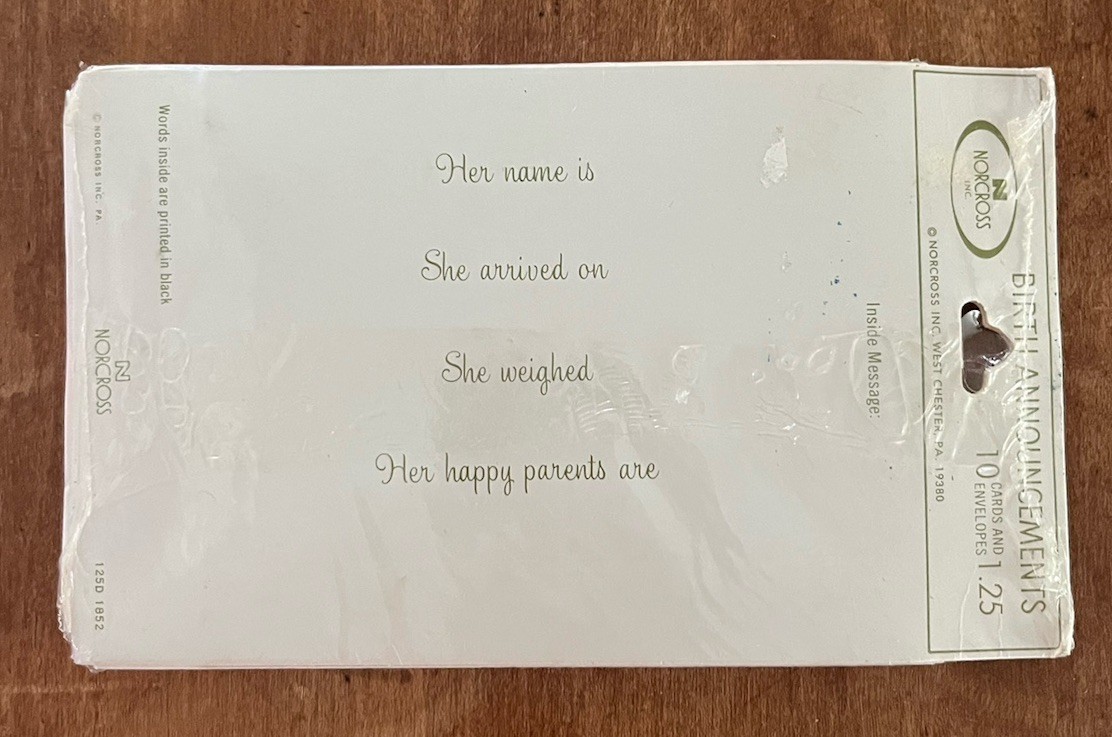 Vintage 1970s Baby Girl Birth Announcement 10 Cards Butterfly Bunny Norcross NOS