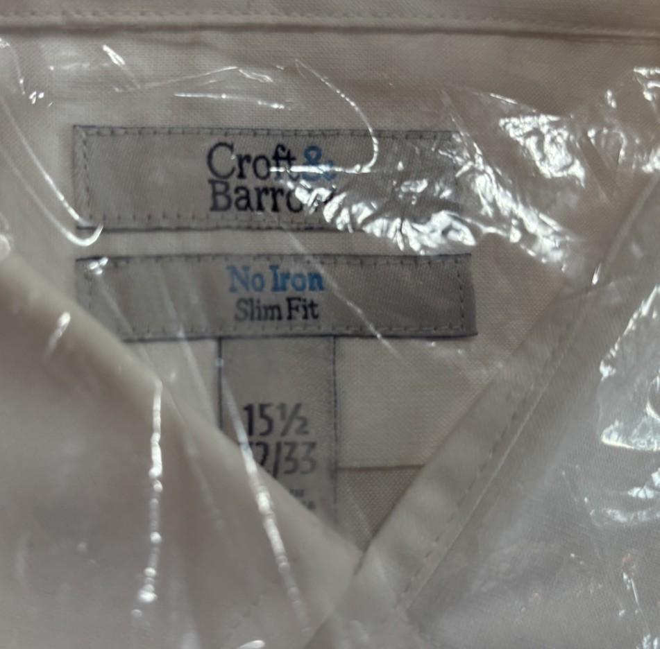 MENS Croft Barrows Wrinkle Resistant White Dress Shirt 15 1/2 , 32/33, Slim