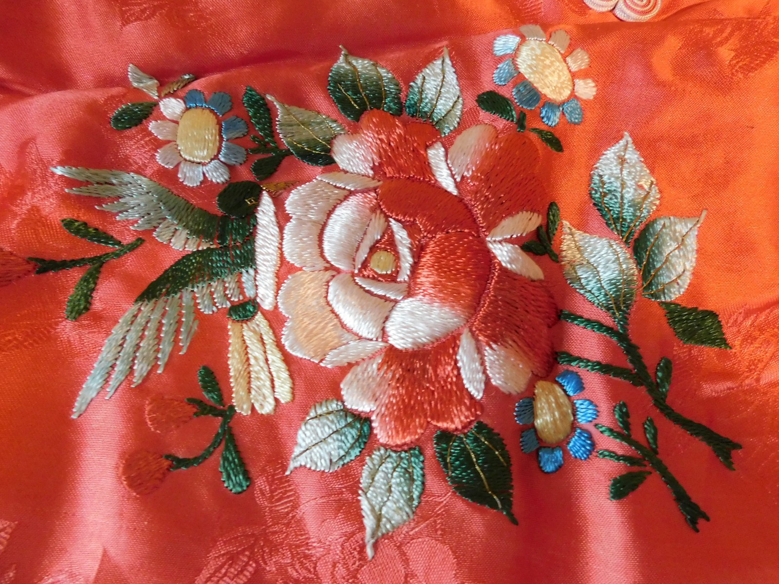 Vintage Embroidered Silk 2 Piece Floral Chinese Asian Pajamas Loungewear