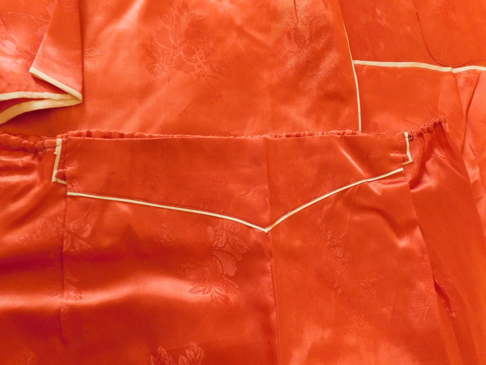 как выглядит Vintage Embroidered Silk 2 Piece Floral Chinese Asian Pajamas Loungewear фото