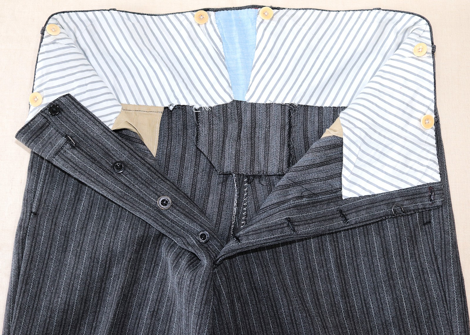 как выглядит French 1930/40s Grey Striped Wool Tailor Made Pleated Pants W37 Made in France фото