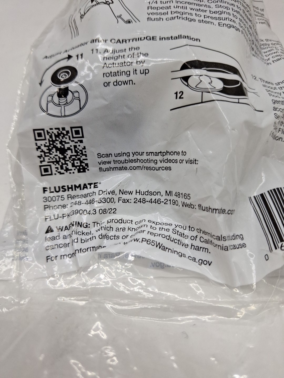 FLUSHMATE C-100500-KIT FLUSH CARTRIDGE SHANK INKET SCREEN DUCKBILL VALVE