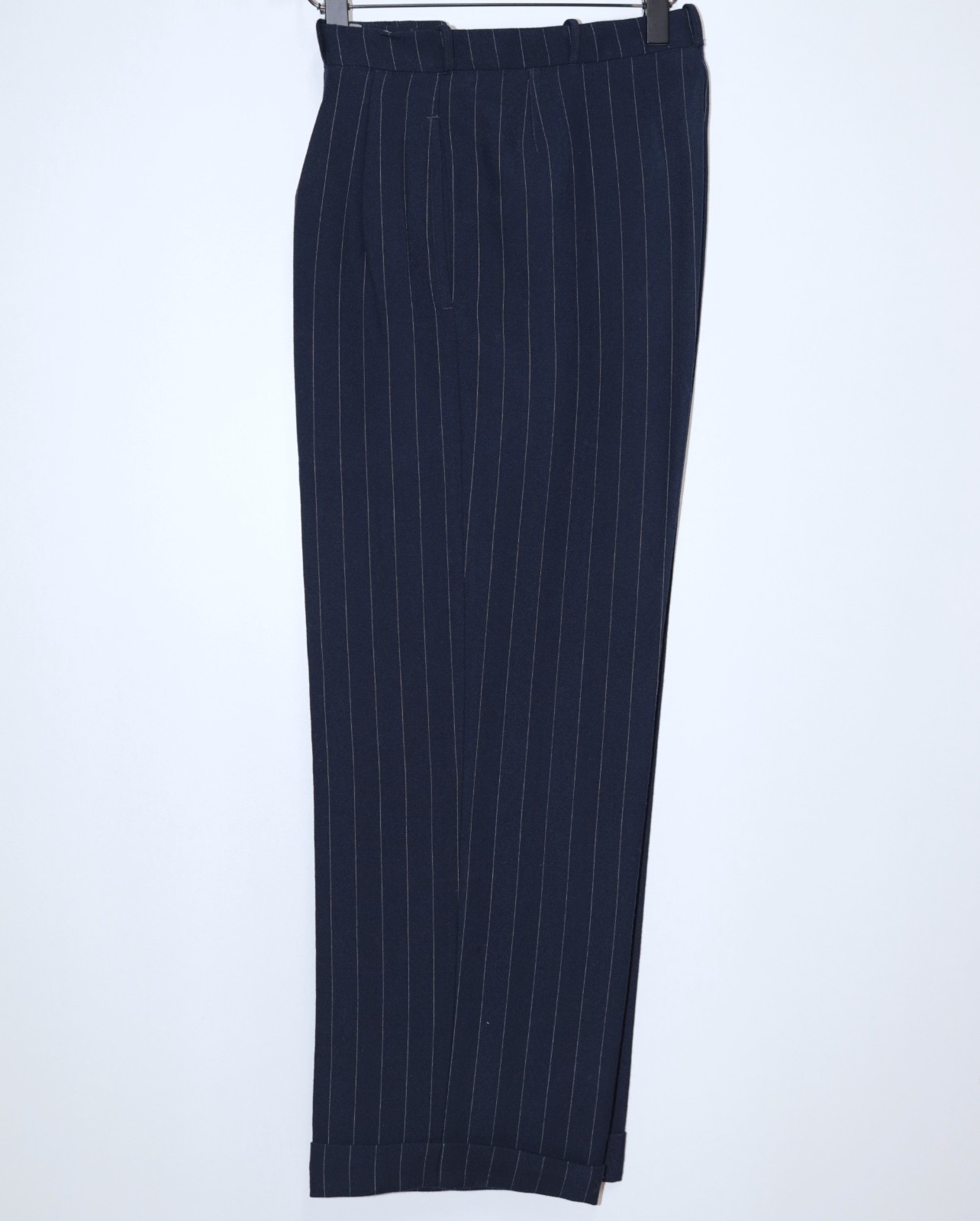 как выглядит French 1940s Dark Blue Striped Wool Tailor Made Pleated Pants W32 Made in France фото