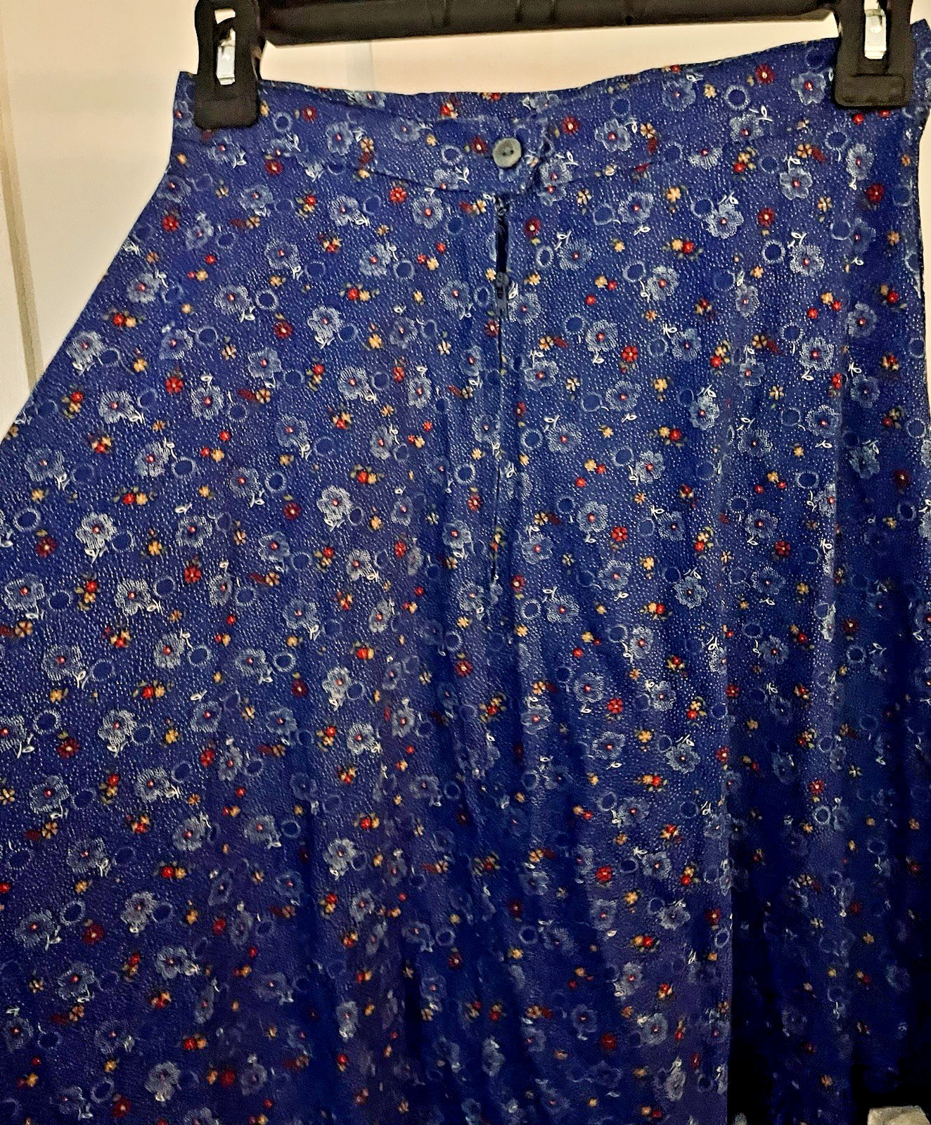 как выглядит VTG 70 s Ms. Paquette Skirt Prairie Blue Calico Ruffles Eyelet POCKETS SZ 12 фото